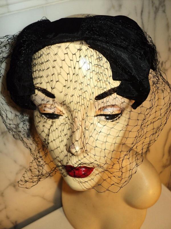 A 1940's church hat Demi Chapeau with a double large bow at the top with veil.