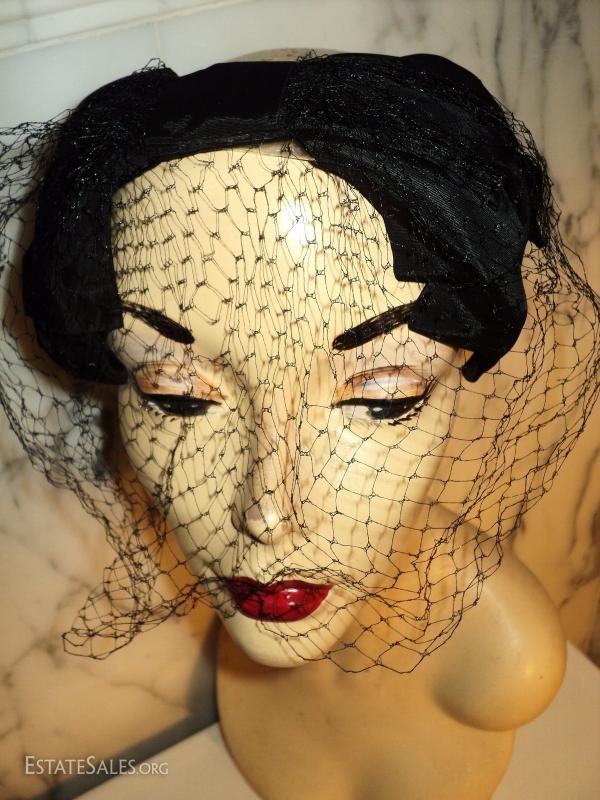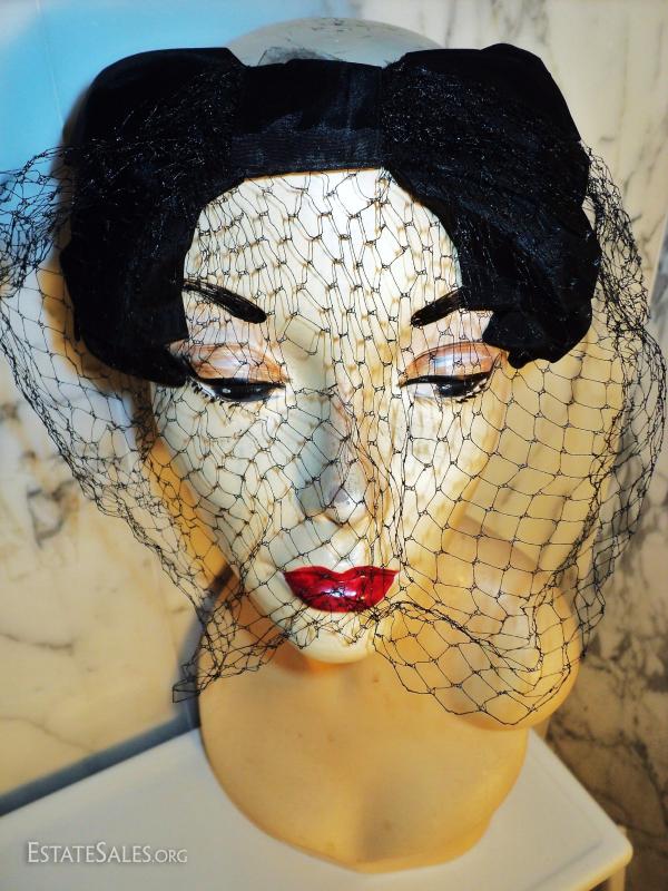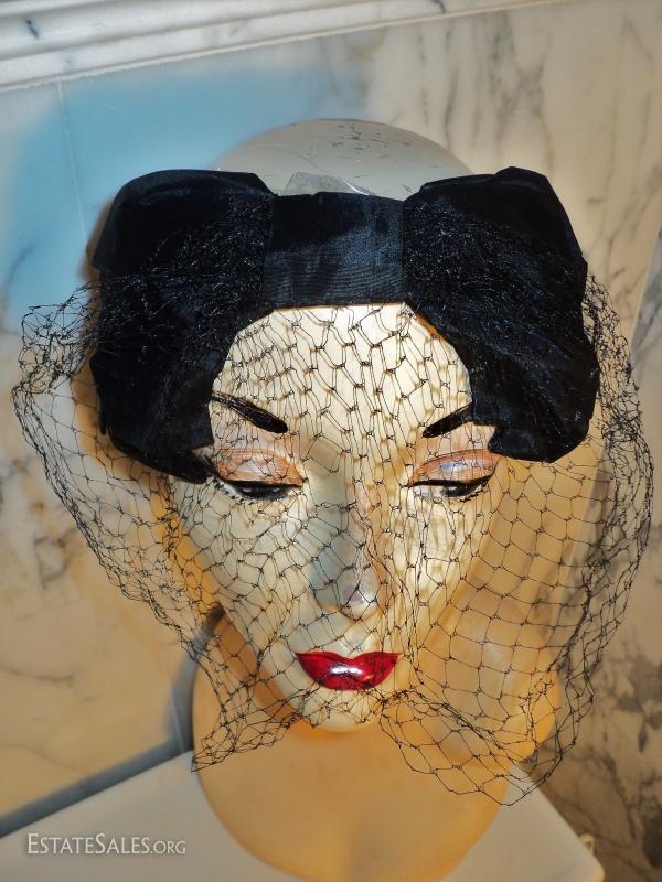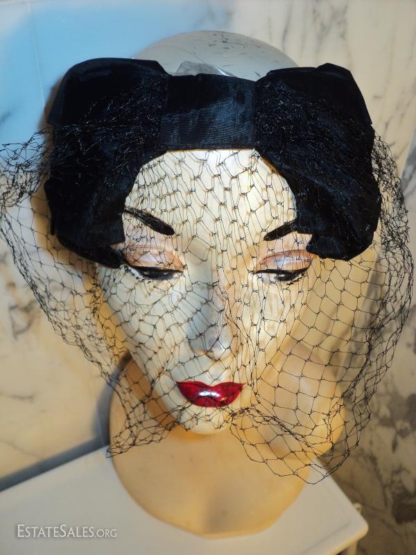 A 1940's church hat Demi Chapeau with a double large bow at the top with veil.