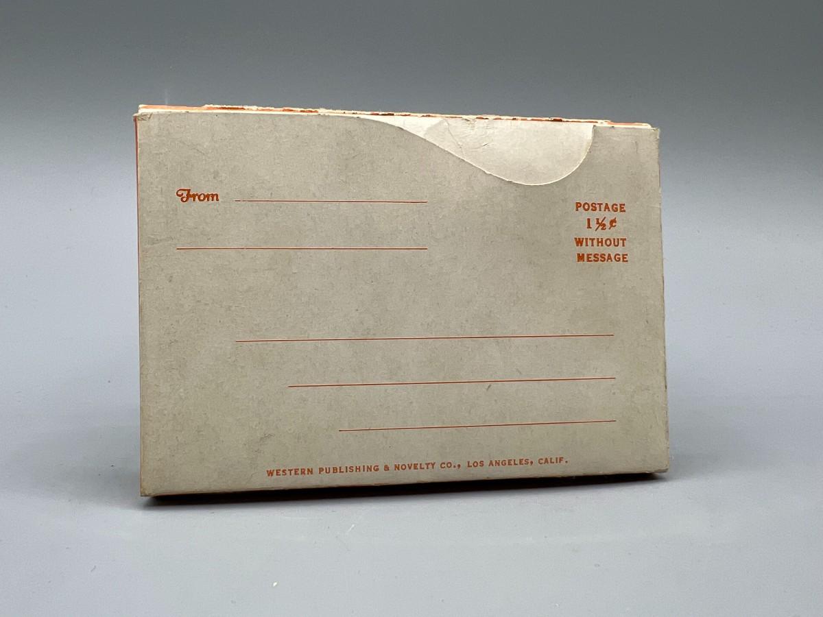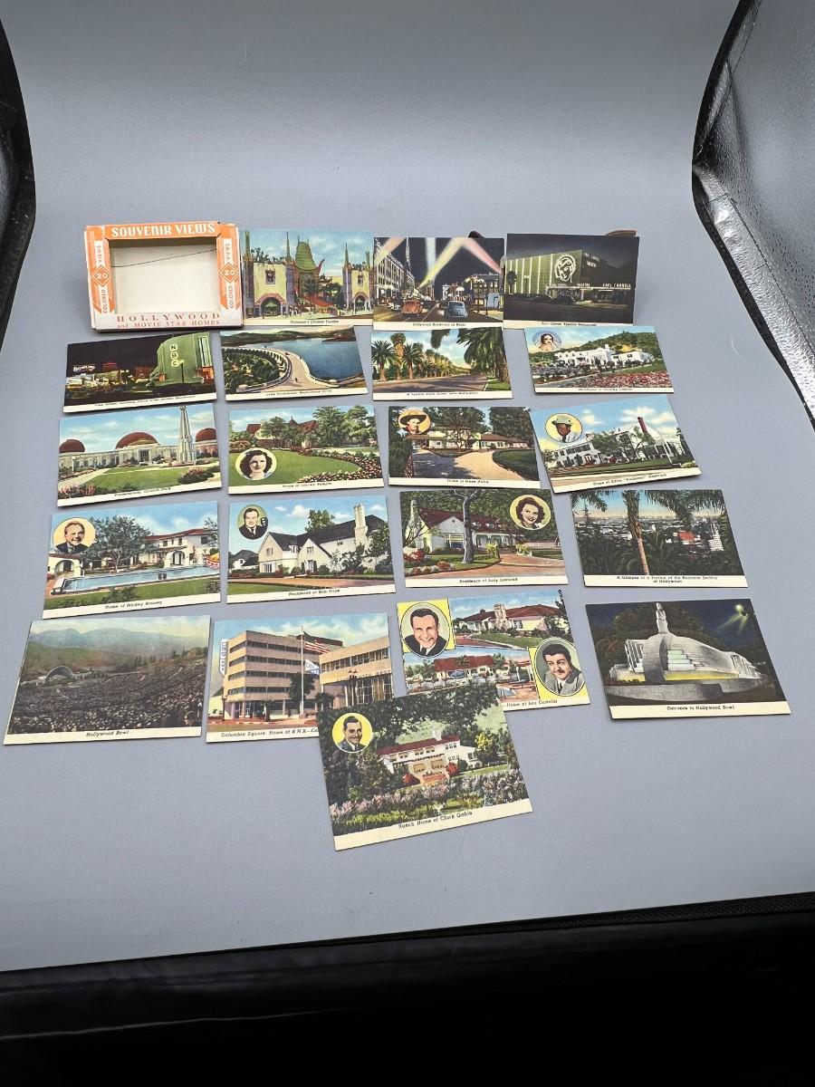 Vintage 1940s Souvenir Views Hollywood & Movie Star Homes Postcards Western Publishing & Novelty Co., there is some ripping on the box, but there is no significant damage to the postcards and is in good vintage condition. The lot is complete, check pictures for more details and for sizing.