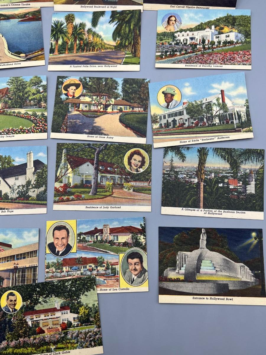Vintage 1940s Souvenir Views Hollywood & Movie Star Homes Linen Postcards Western Publishing & Novelty Co.