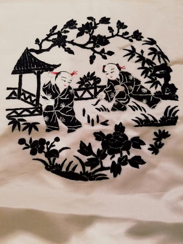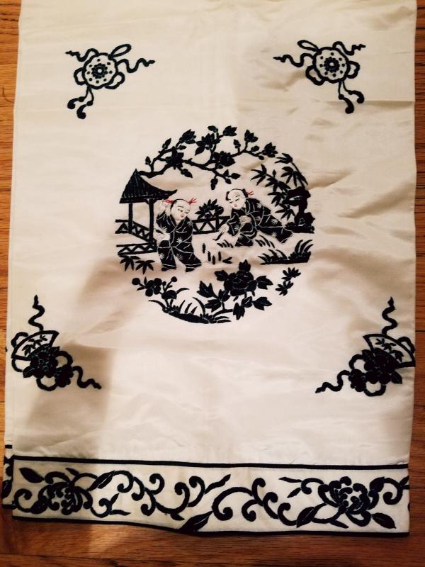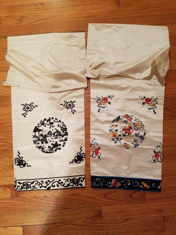 These are almost antique never used very beautiful Chinese embroidered wide pants with ti ribbon at waist.
