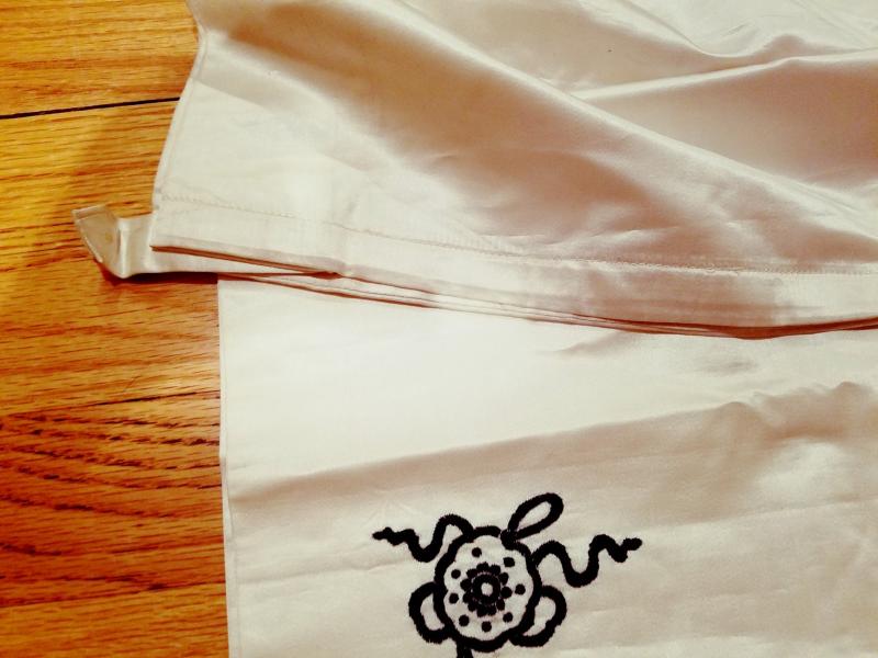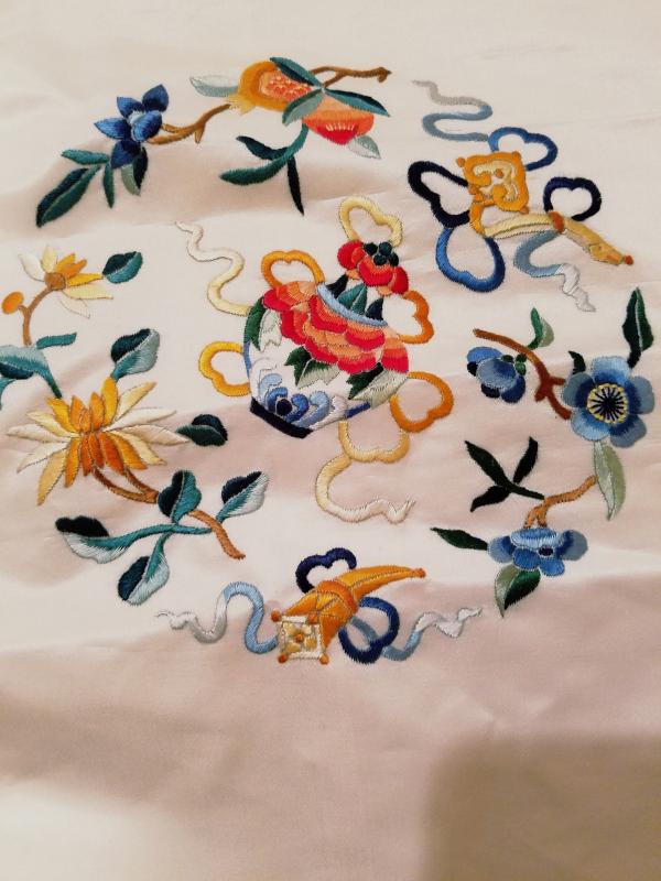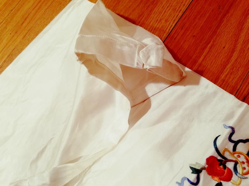 Vintage 1940's two silk satin Chinese hand embroidered wide pants tie ribbon
