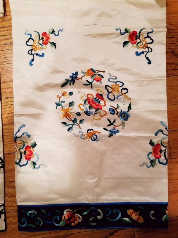 These are almost antique never used very beautiful Chinese embroidered wide pants with ti ribbon at waist.