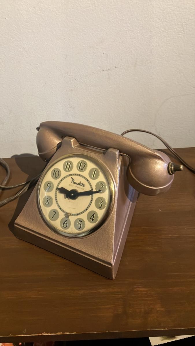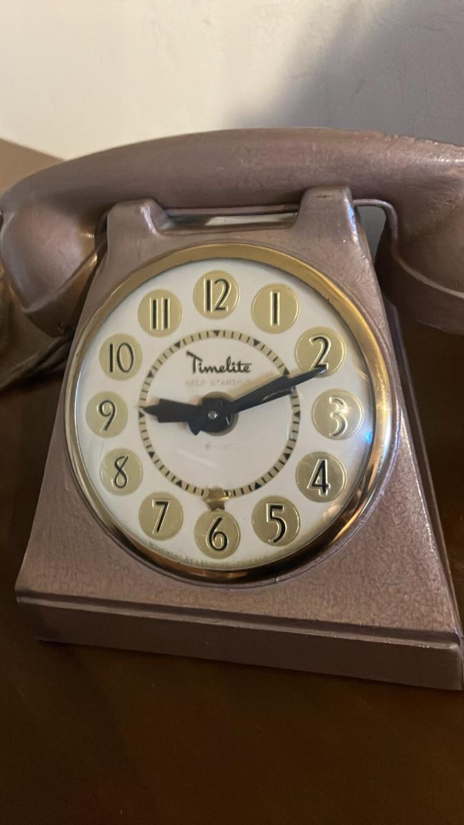 Vintage 1940s-1950s Timelite Rotary Telephone Shaped Electric Clock & Cigarette Lighter by Alba Art