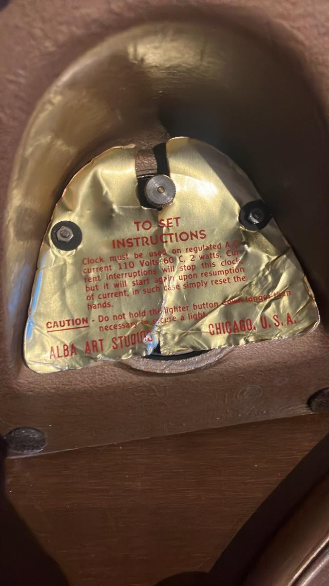 - Original power cord included; plugged in briefly and fully functional – clock runs smoothly and keeps accurate time.