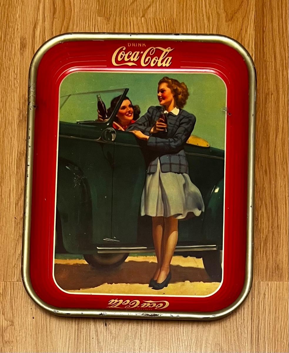 Vintage 1942 COCA COLA Metal Serving Tray, Girls & Green Convertible Roadster
