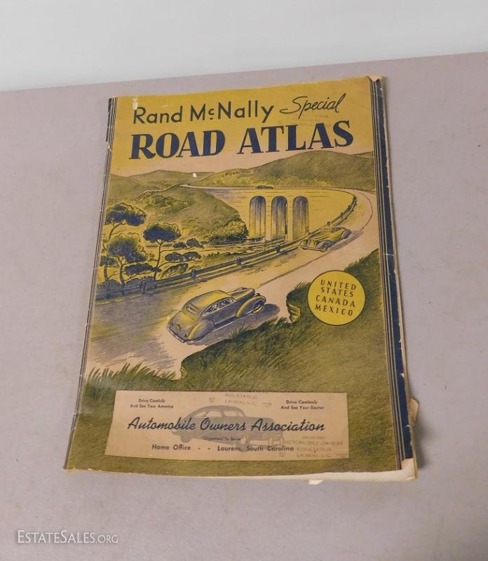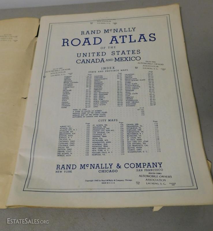 Vintage 1945 Rand McNally Road Atlas. Has nice color maps. Damage to back cover.
