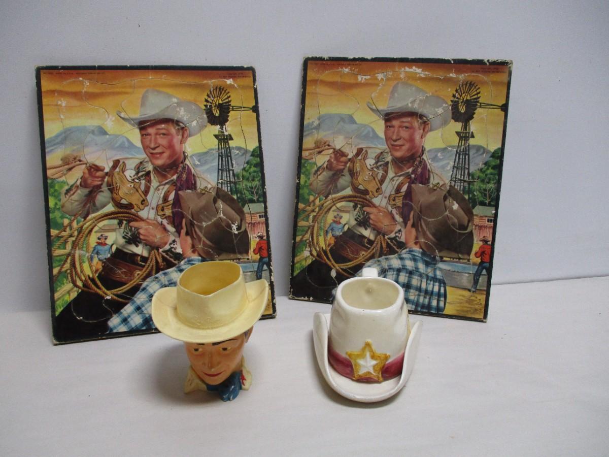 Vintage 1950 Cowboy Roy Rogers Puzzle Whitman Publishing No 2982 & Cups