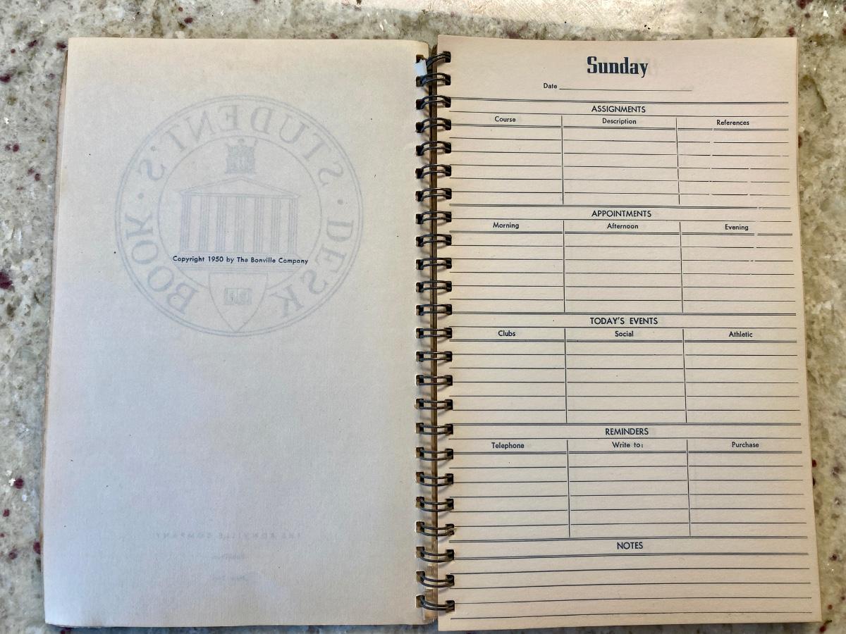 Vintage 1950 Mount Holyoke Desk Book Appointment Book Calendar