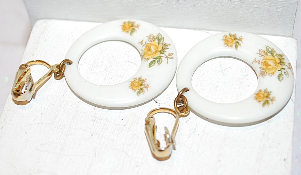 VINTAGE 1950-1960's 2 Sided Ceramic Yellow Flowered Earrings (1¼" Diam.) with an English Lock Clasp