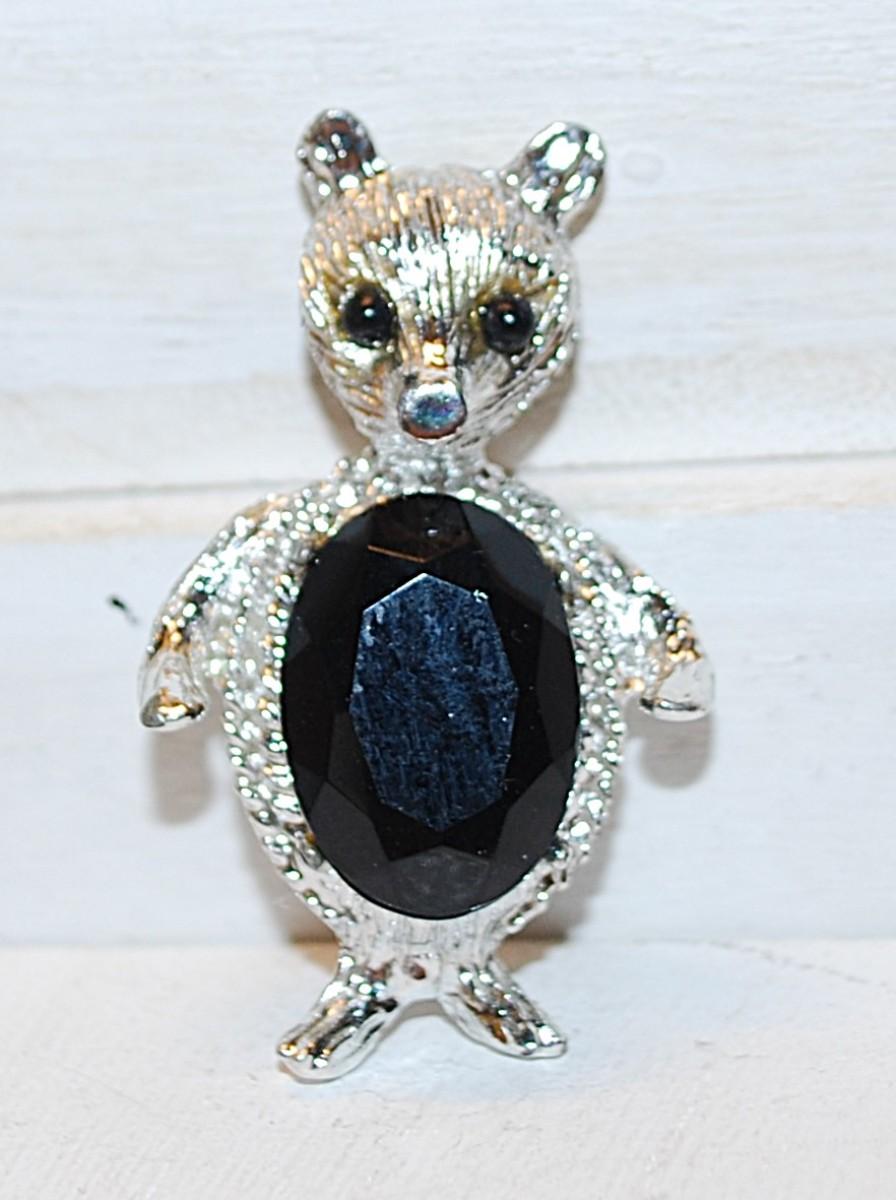 VINTAGE 1950-1960's BLACK EYED & BELLY Stones FOX Brooch (1¾" x 1") on a Silver Tone Base