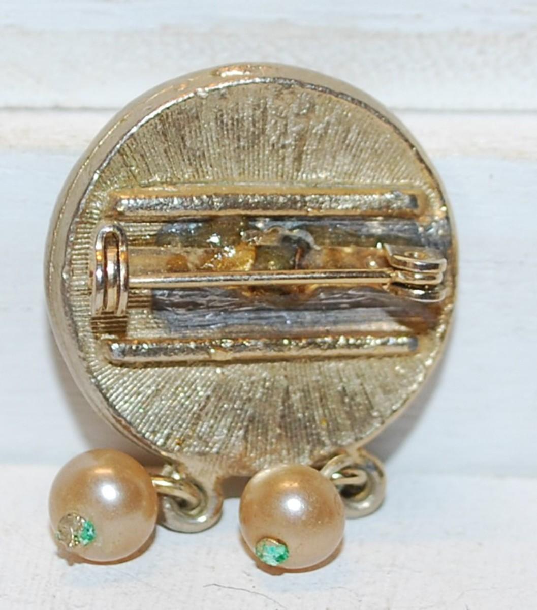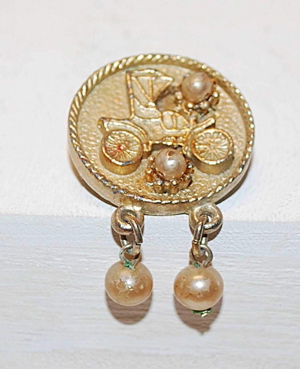 VINTAGE 1950-1960's Round "Auto-Designed" 4 PEARL Styled PIN (¾" x 1½") on Brushed Gold Tone Base