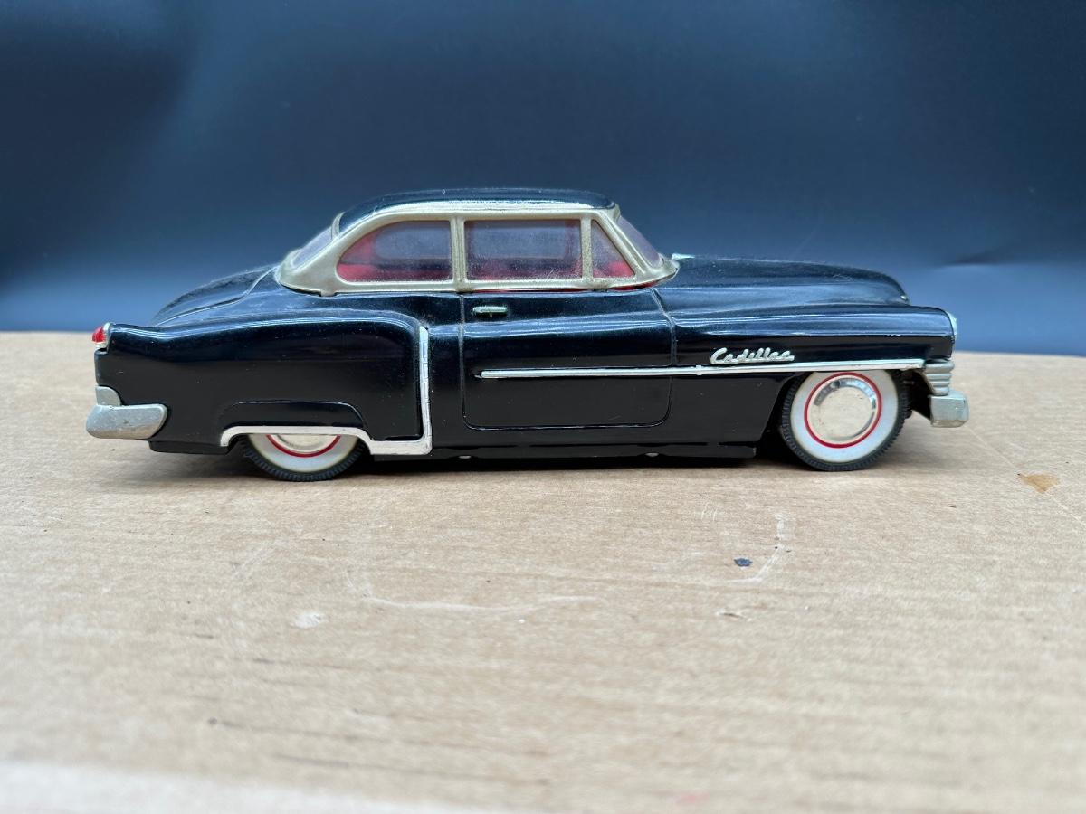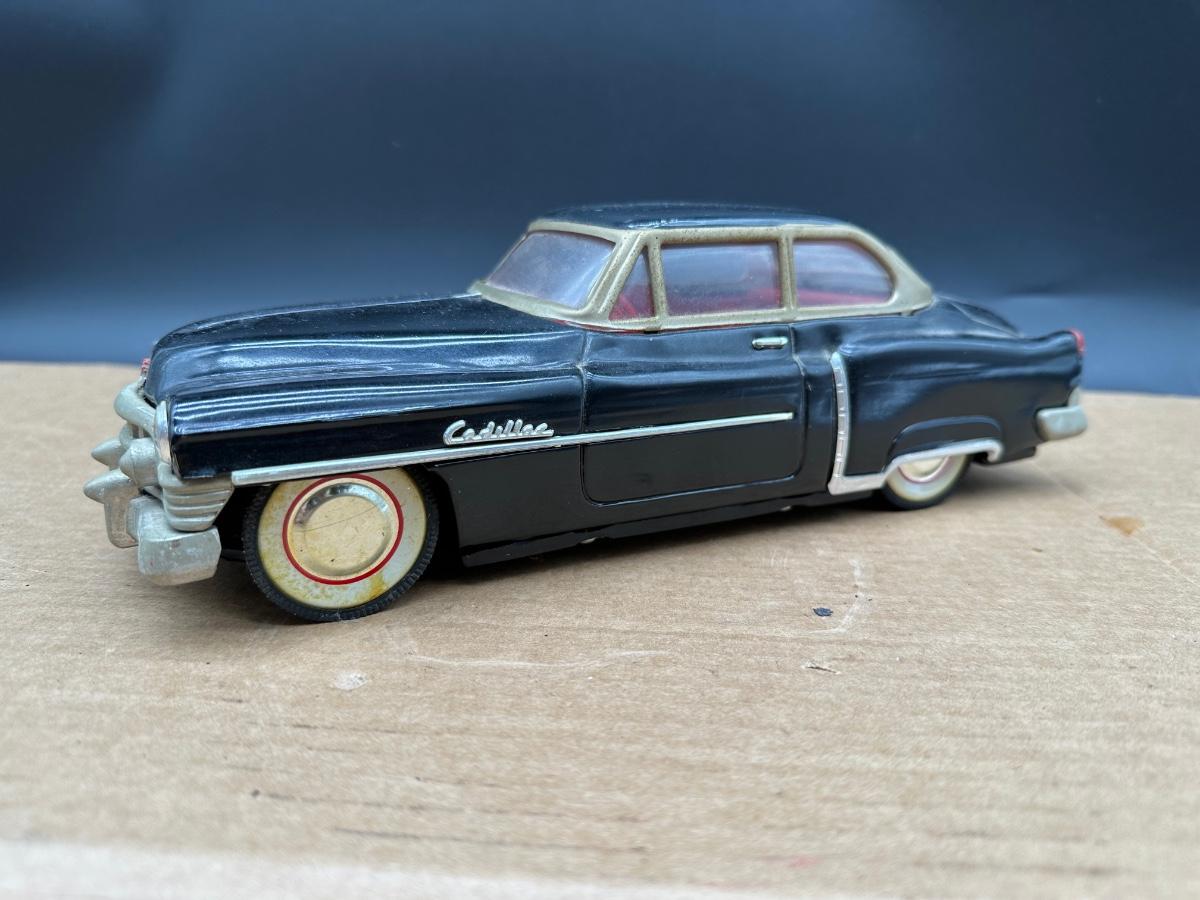 Vintage 1950s Cadillac Sedan Toy Car – Stamped Metal Body, Whitewall Wheels