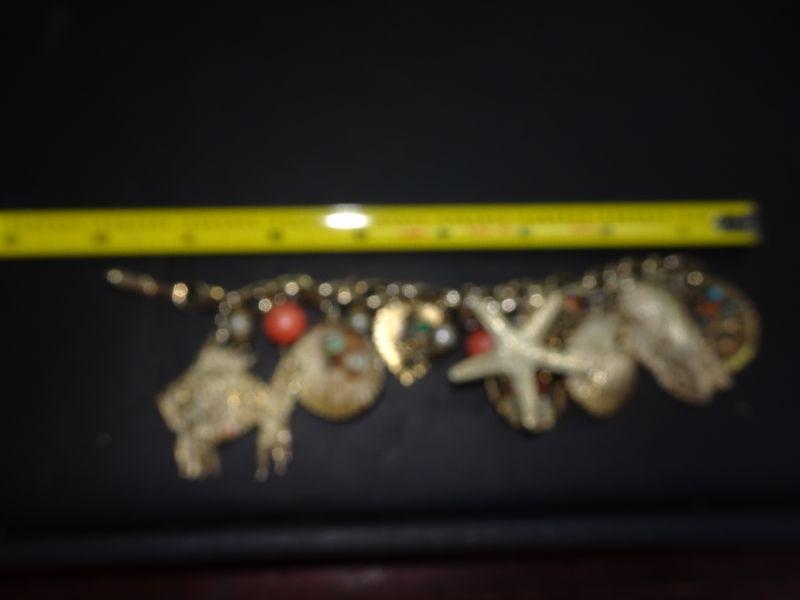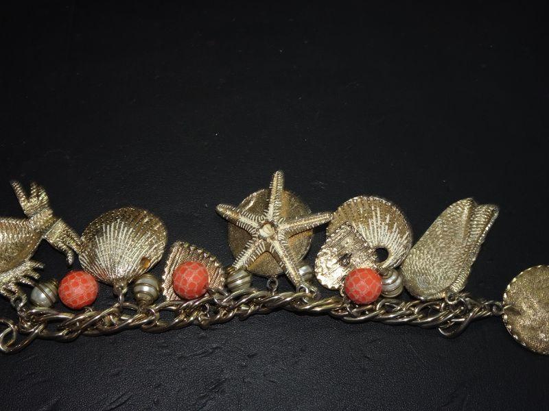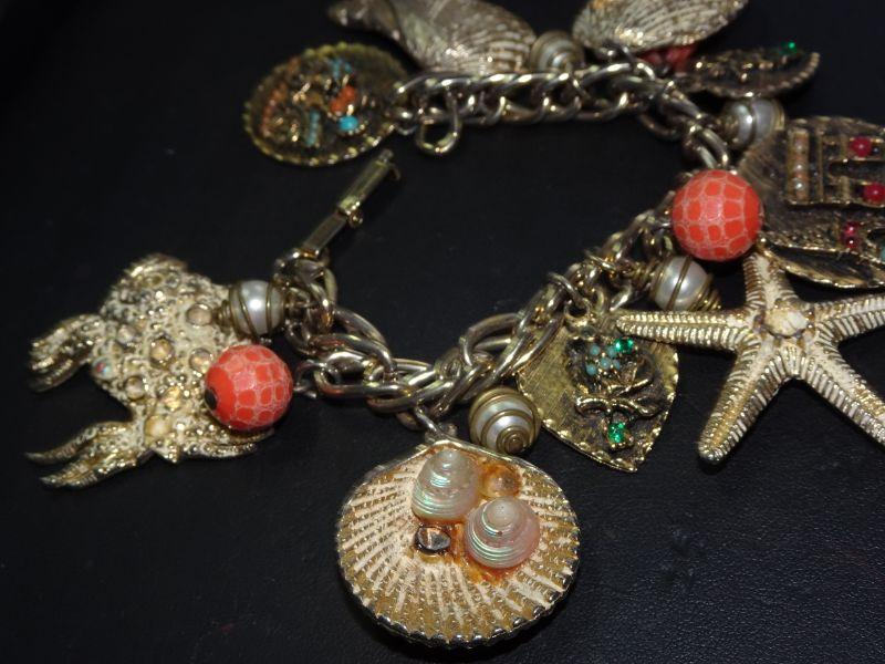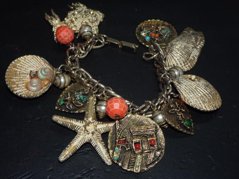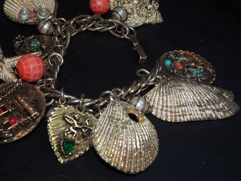 Vintage 1950's Chunky Nautical Charm Bracelet, Shells, Star Fish, Hearts