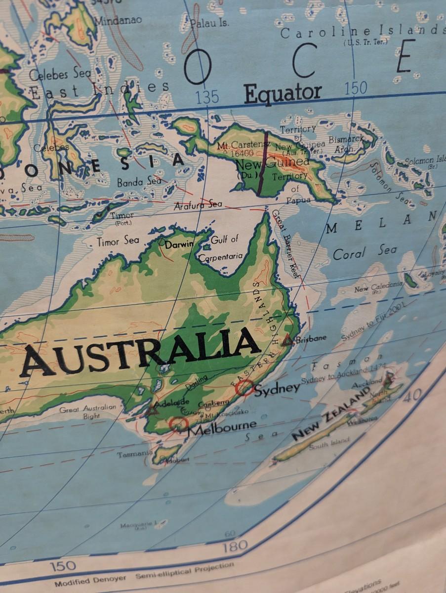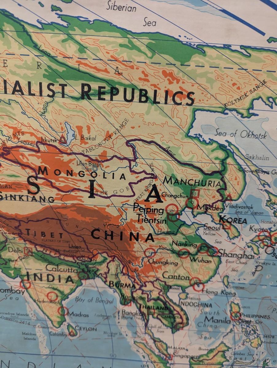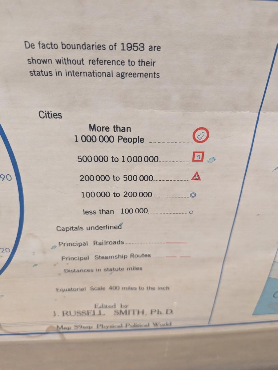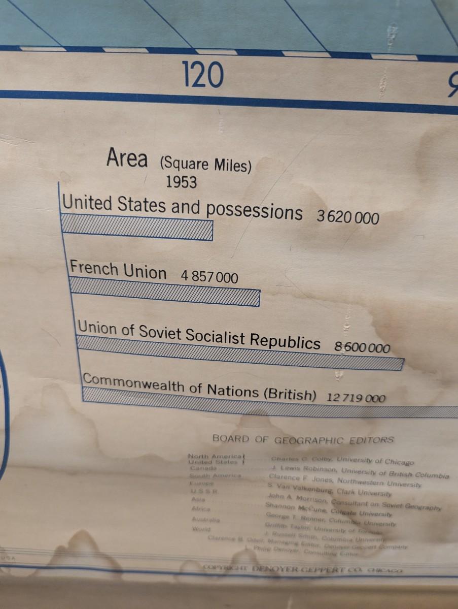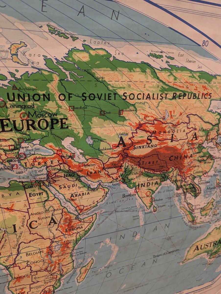Vintage 1950's Denoyer-Geppert Pull-Down World Map by J Russell Smith