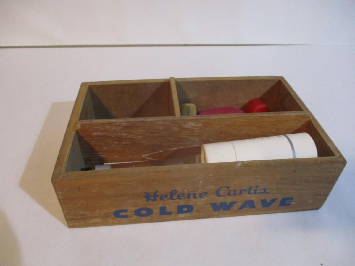 Vintage 1950's Helene Curtis Cold Wave Wooden Box