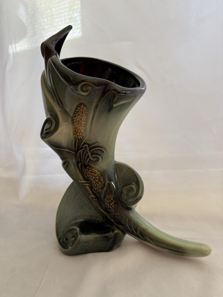 Vintage Hull Art Pottery cornucopia vase from the "Parchment and Pine" line.