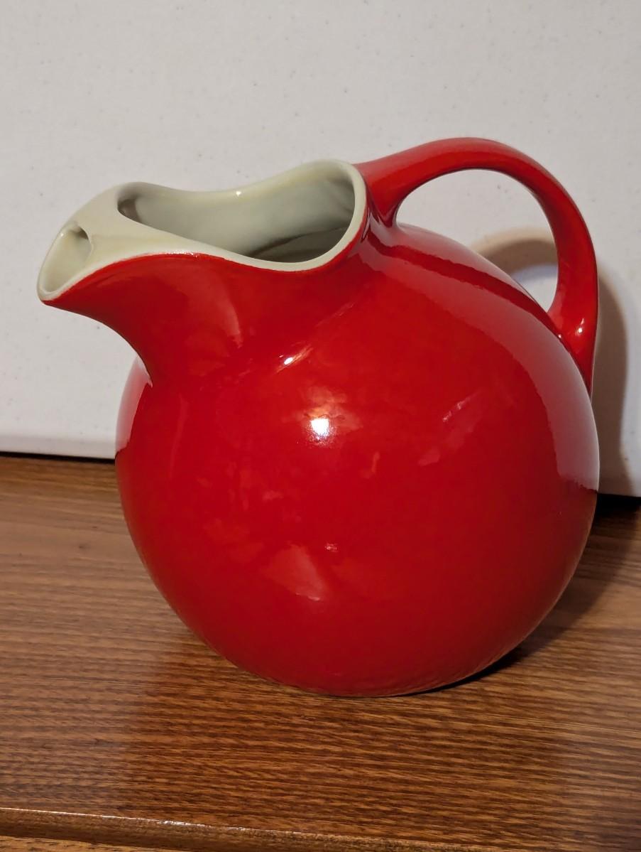 Vintage 1950's Kitchen Red Hall Pottery Tilted Ball Jug