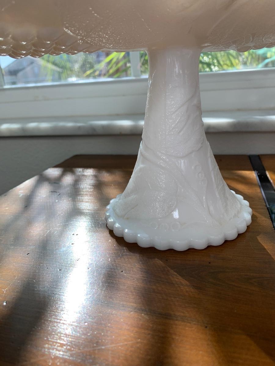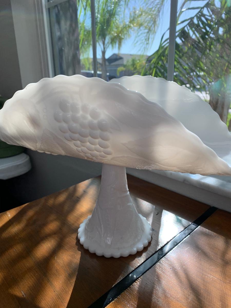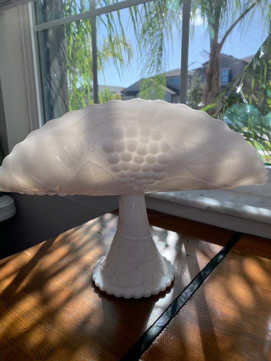This beautiful piece features a molded grape design and scalloped edges.