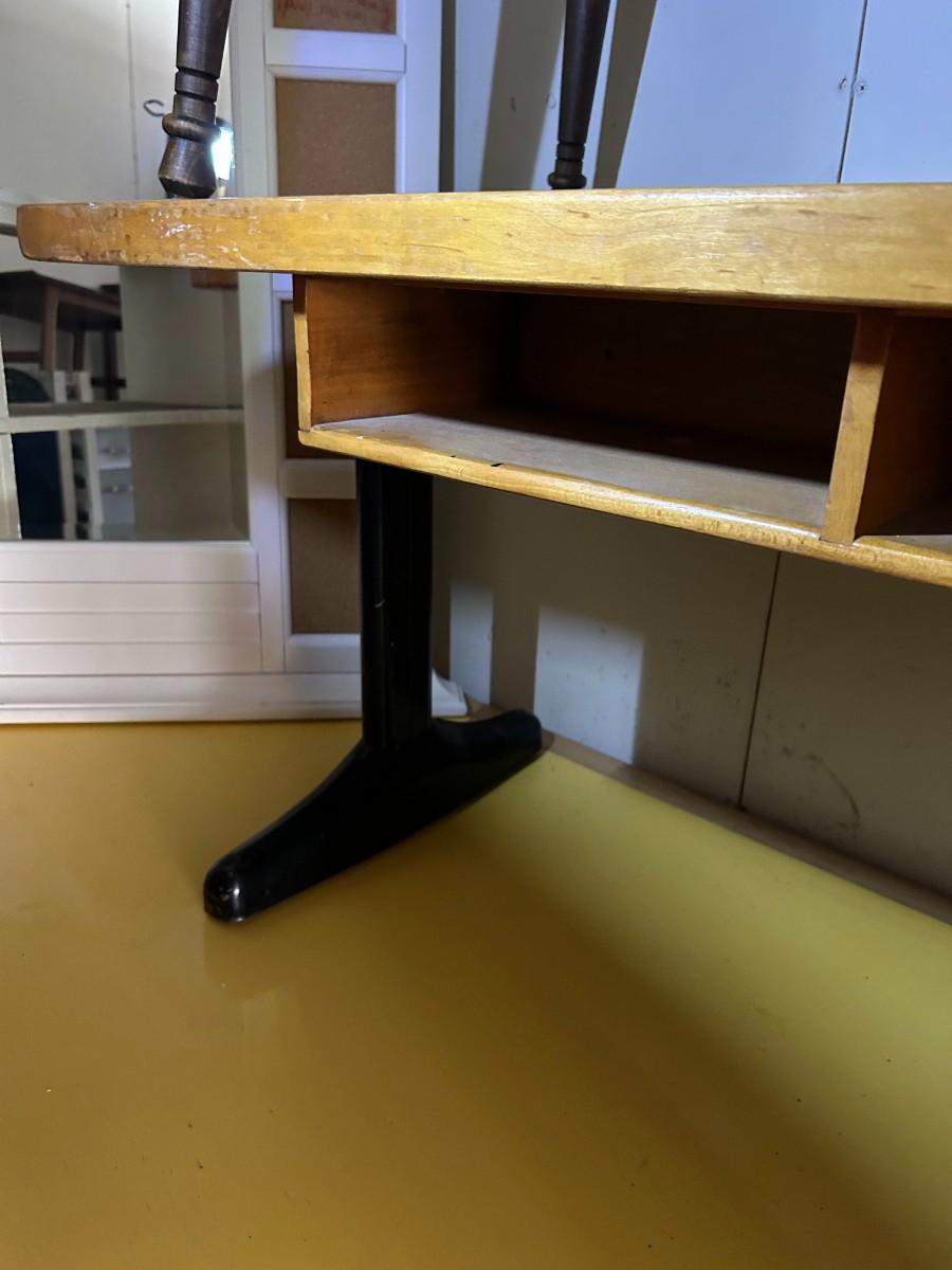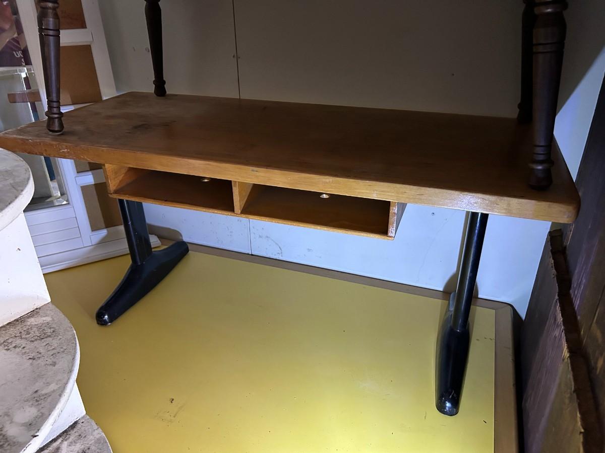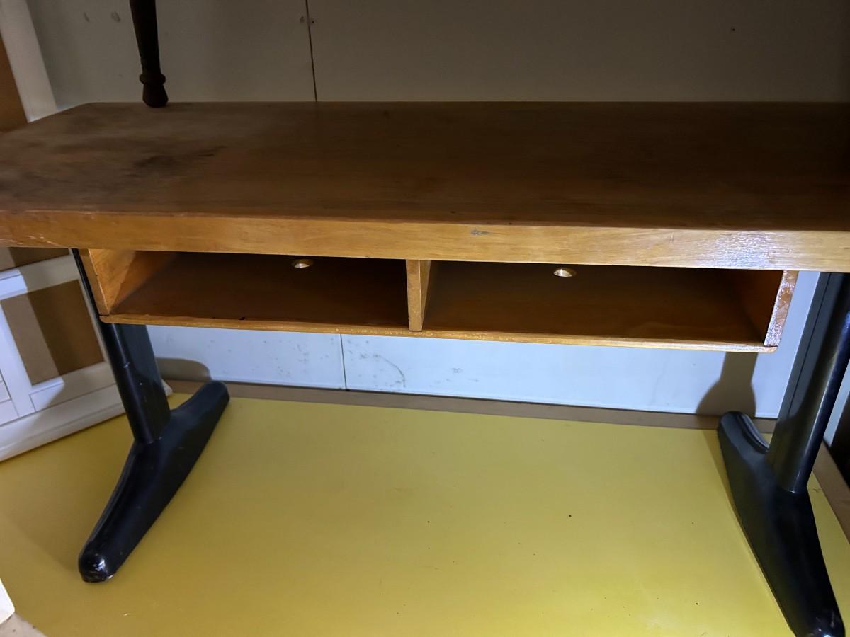This desk is in structural condition with typical signs of wear for a piece of this age. The top of the desk could use sanding, although the wood has no gougers or dings. (Please see the pictures for details.)