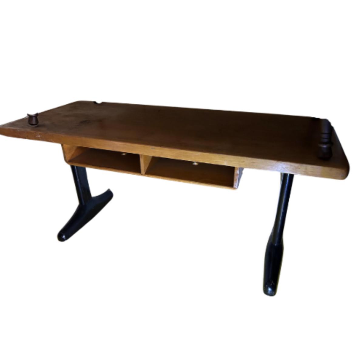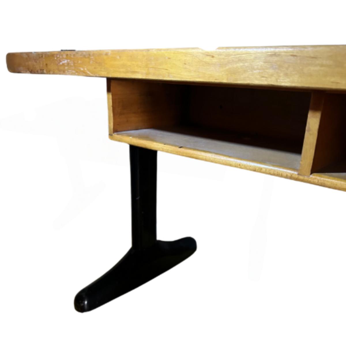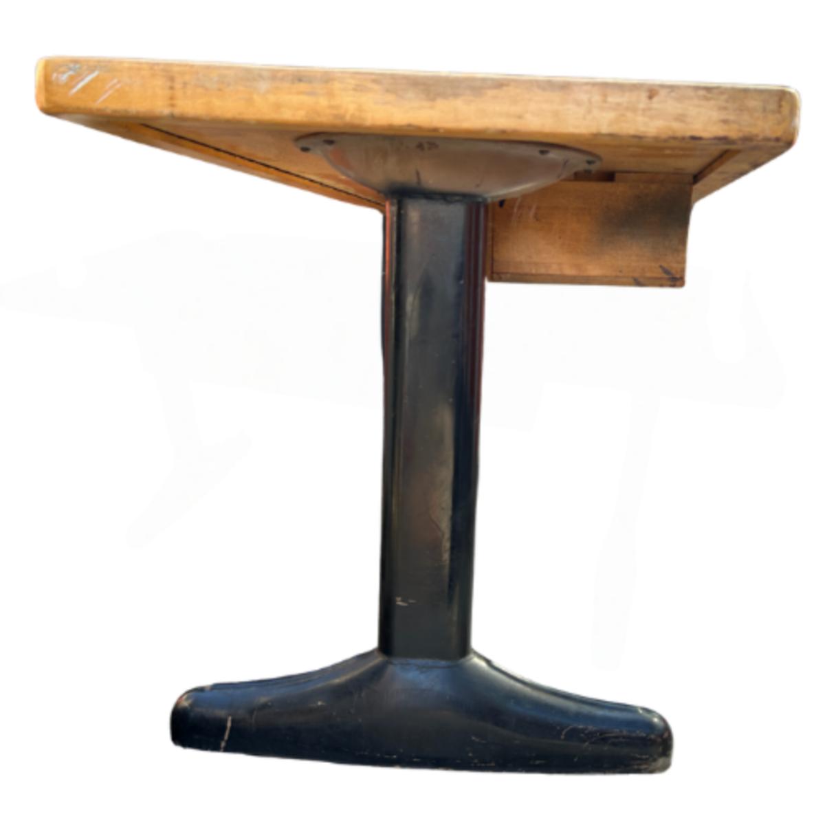 Vintage 1950s Maple Butcher Block Top Student Desk with Black Steel Legs