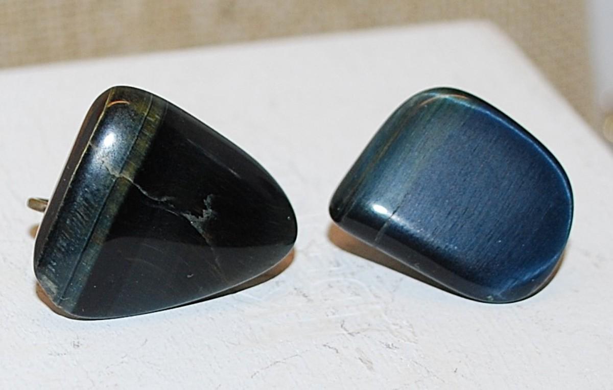 VINTAGE 1950's Odd-Shaped Black-Lined Agate Stone Earrings (1" ) with a Snap-On Clasp