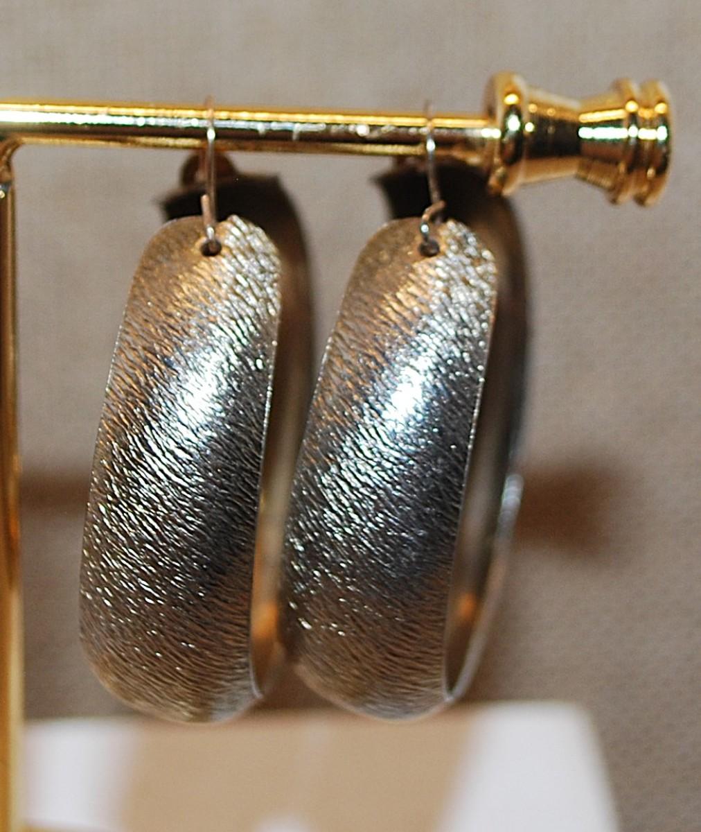 VINTAGE 1950's or 1960's Brushed Light Gold Color "Tin" Earrings (1¼" Circ.) with a Wire Hook Clasp