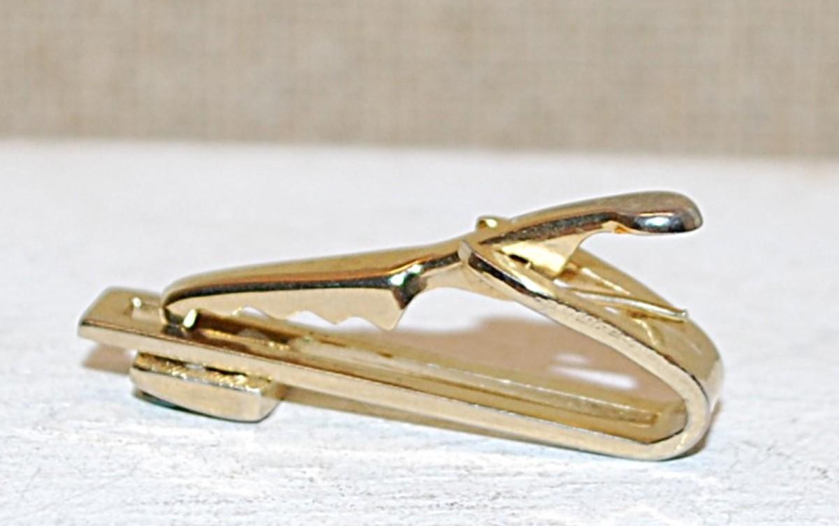 VINTAGE 1950's or 1960's TIE CLASP (1¼") with Small GREEN Square Stone Accent