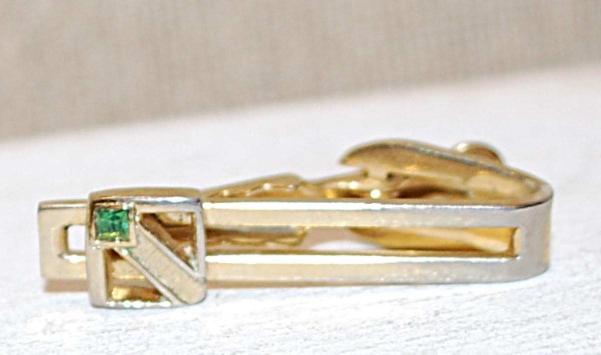 VINTAGE 1950's or 1960's TIE CLASP (1¼") with Small GREEN Square Stone Accent