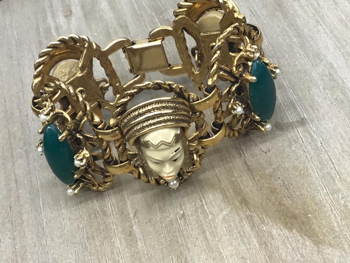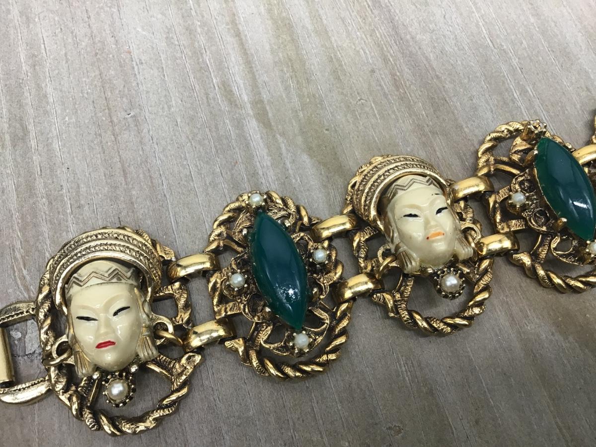 Vintage 1950s Selro-Selini Cream Golden Asian Princess Bracelet