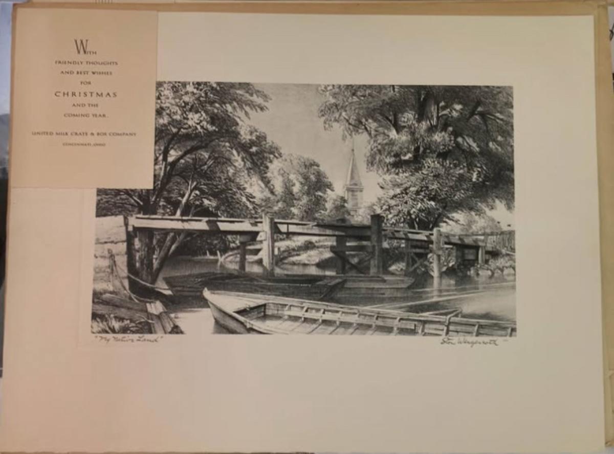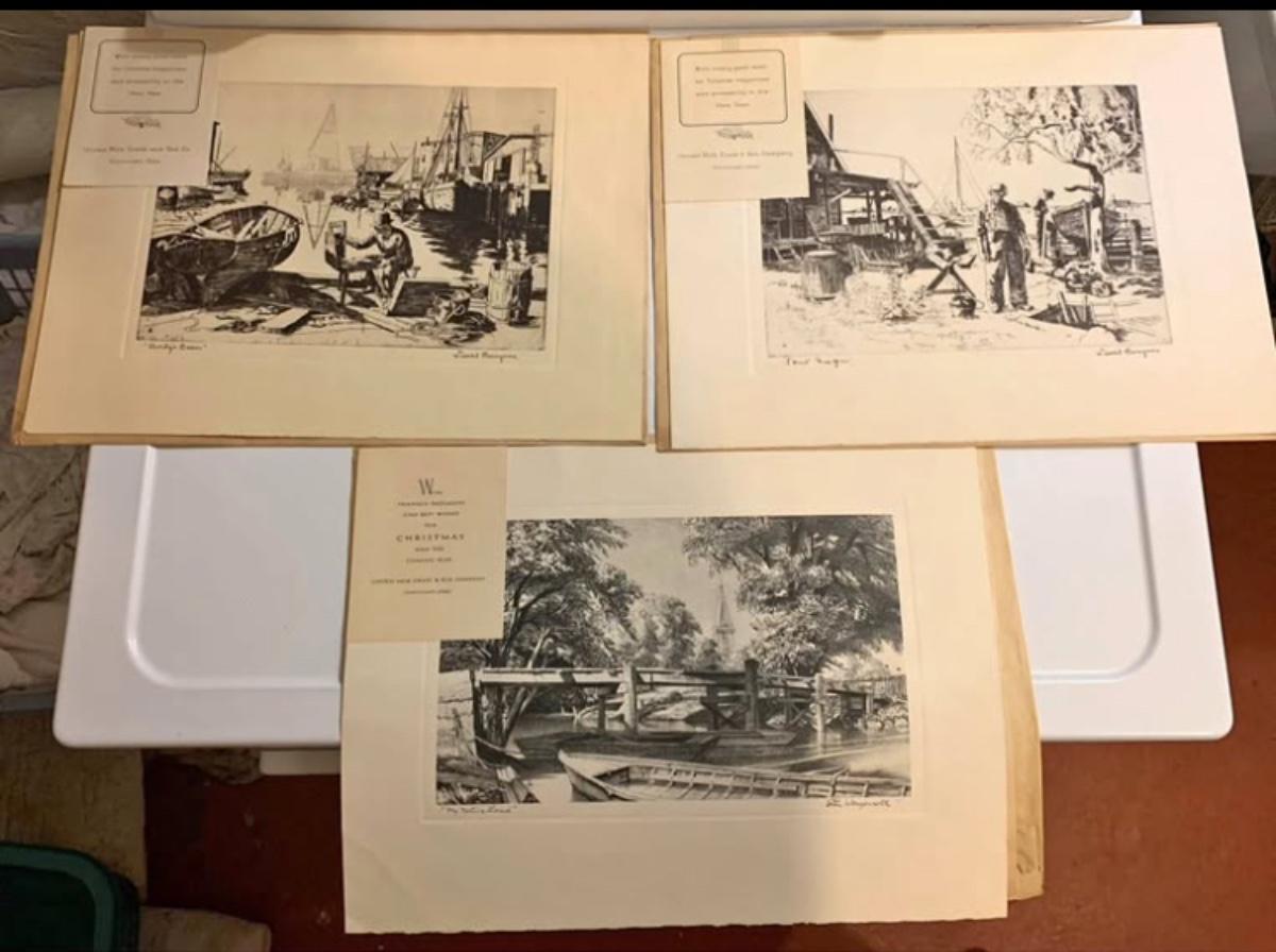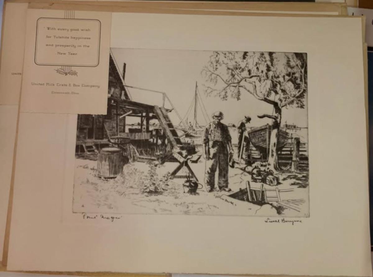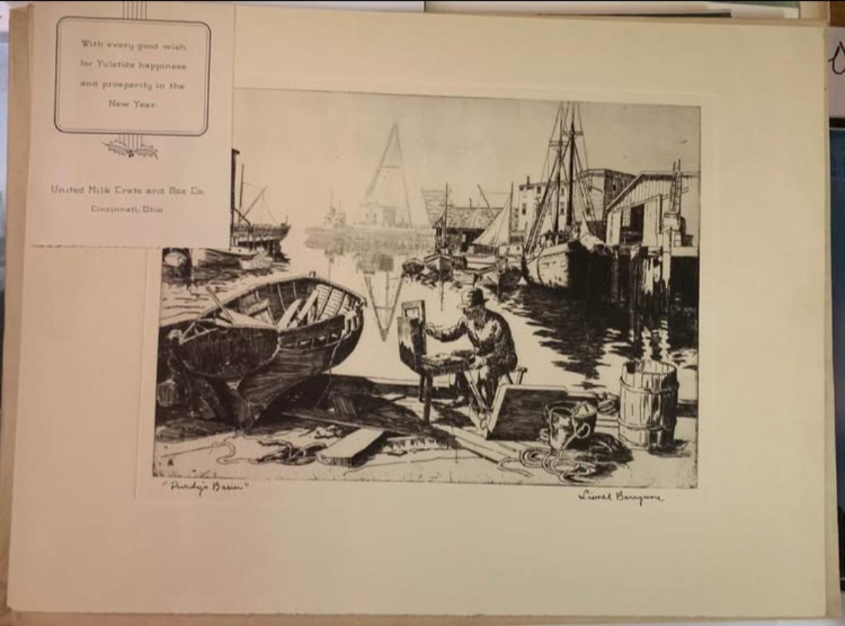 vintage art prints mid century talio crome lionel barrymore stow wengenroth american print ephemera 1950s lithograph etching original envelope holiday corporate art maritime landscape