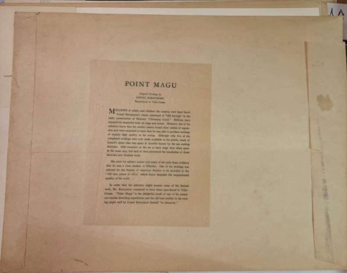 • Lionel Barrymore – “Point Magu” (Talio-Crome etching reproduction)