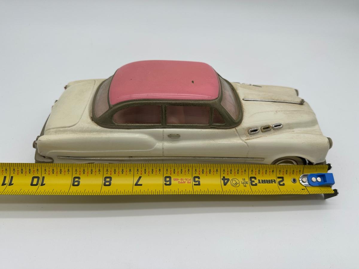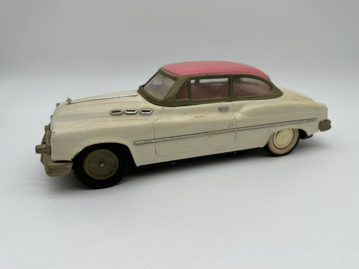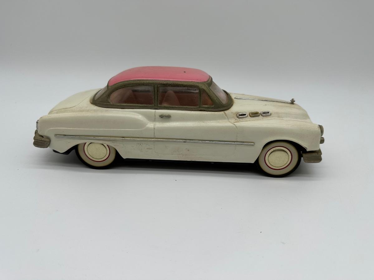 Vintage 1950s Tin Litho Sedan Toy Car – Cream & Pink – Japan