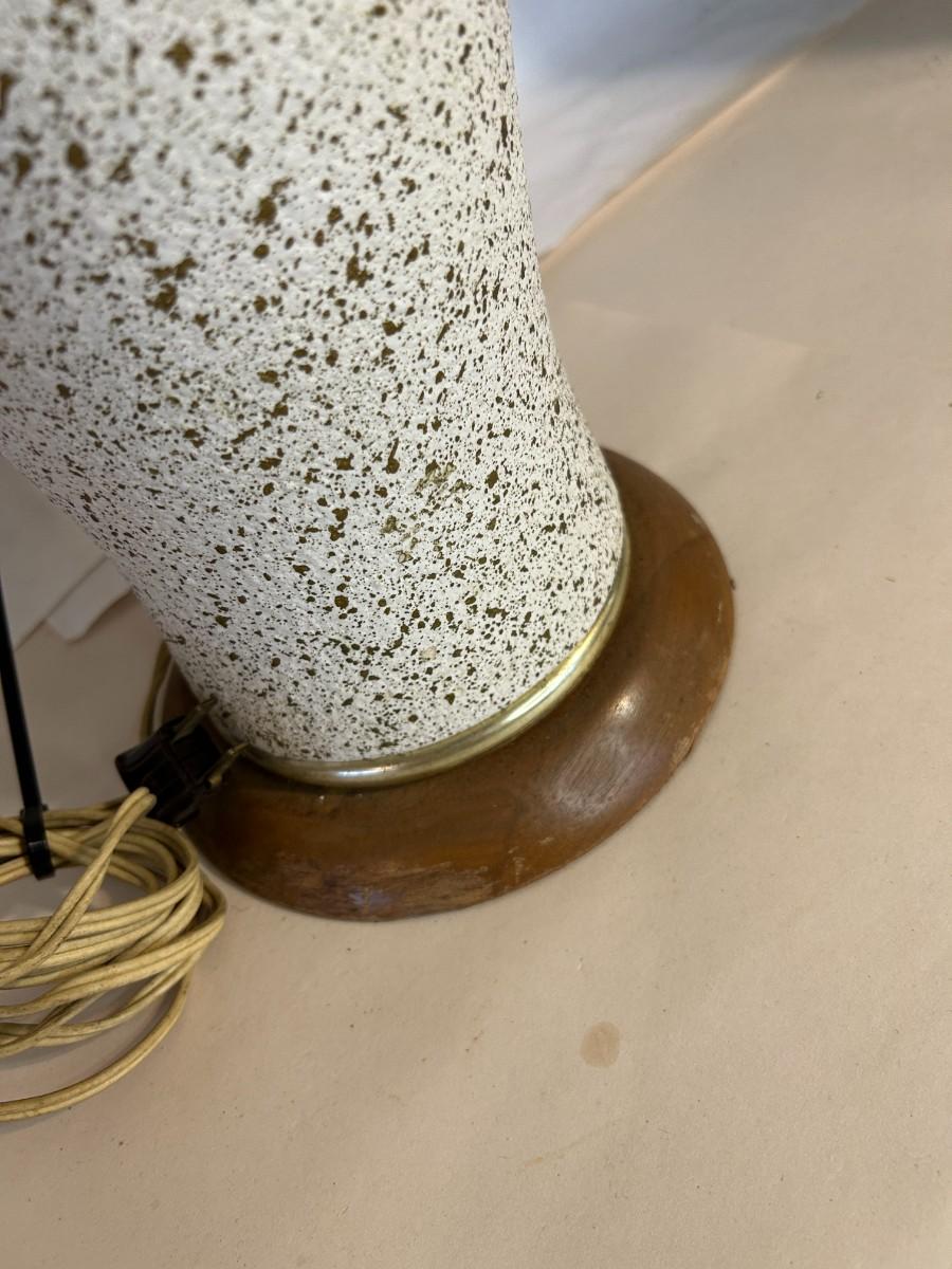 Disclosures: We tested the lamps and recommend replacing the electric wiring before regular use. As with all vintage electrical items, we recommend professional evaluation. The cone has a few imperfections, hence the lower price. (See pictures for details.)