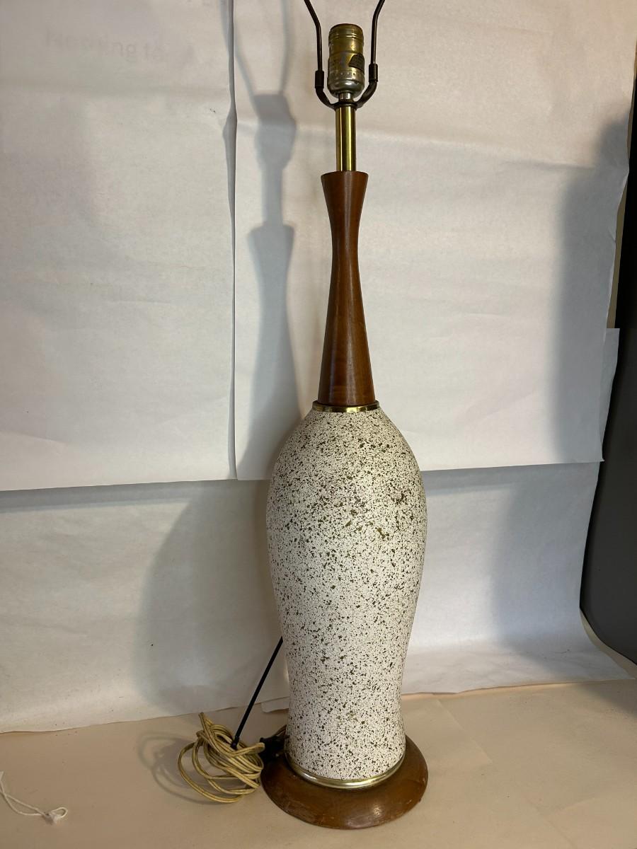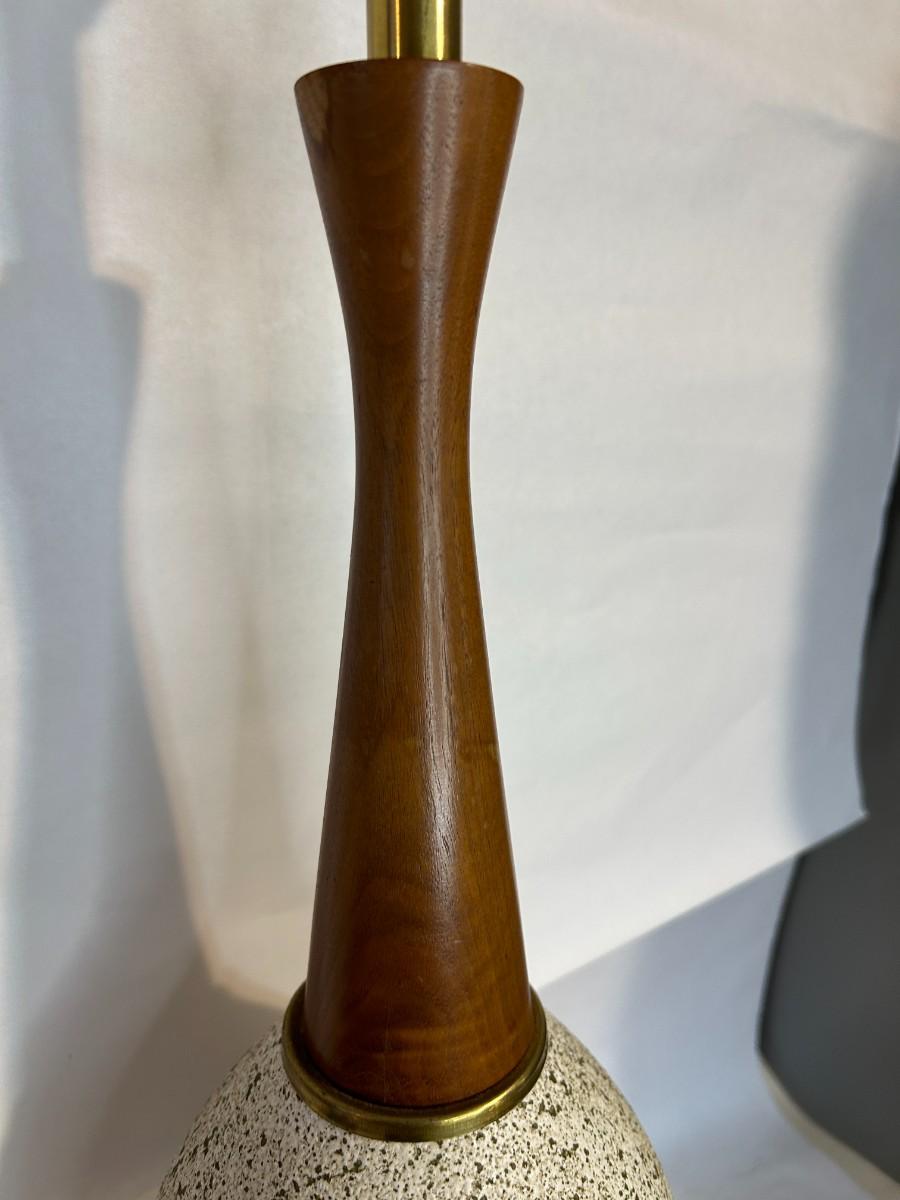 Vintage 1950s Underwriters Laboratories Stone and Teak Table Lamp