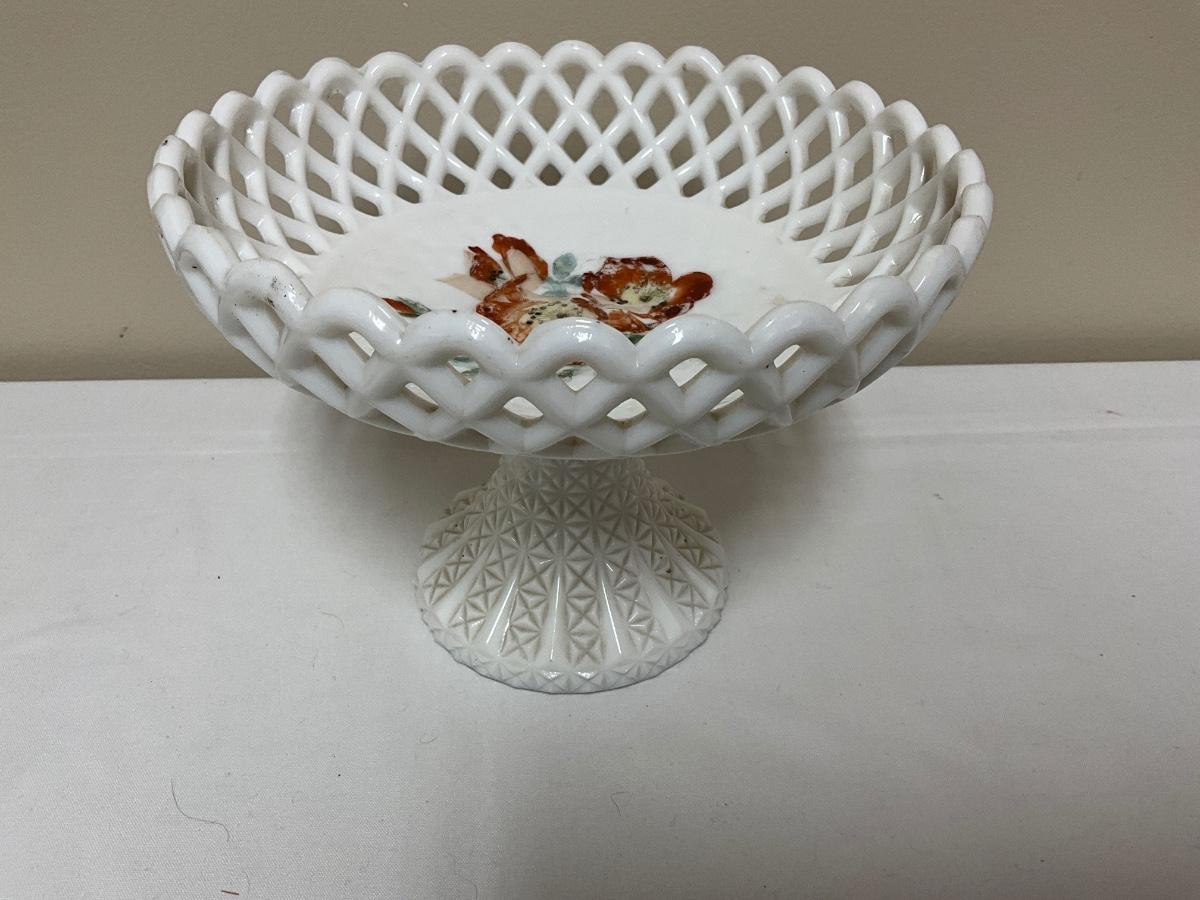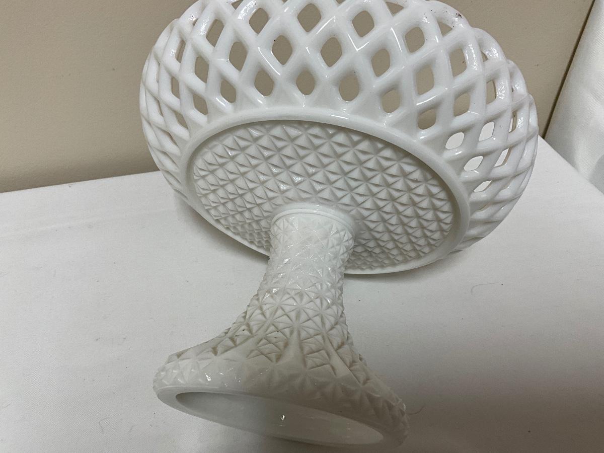 Vintage 1950’s Westmoreland Fruit Bowl Lattice Lace Milk Glass