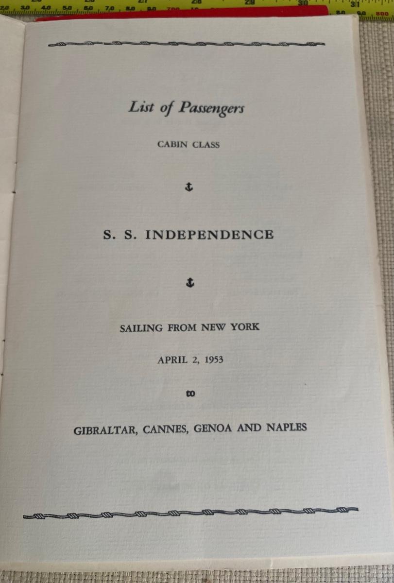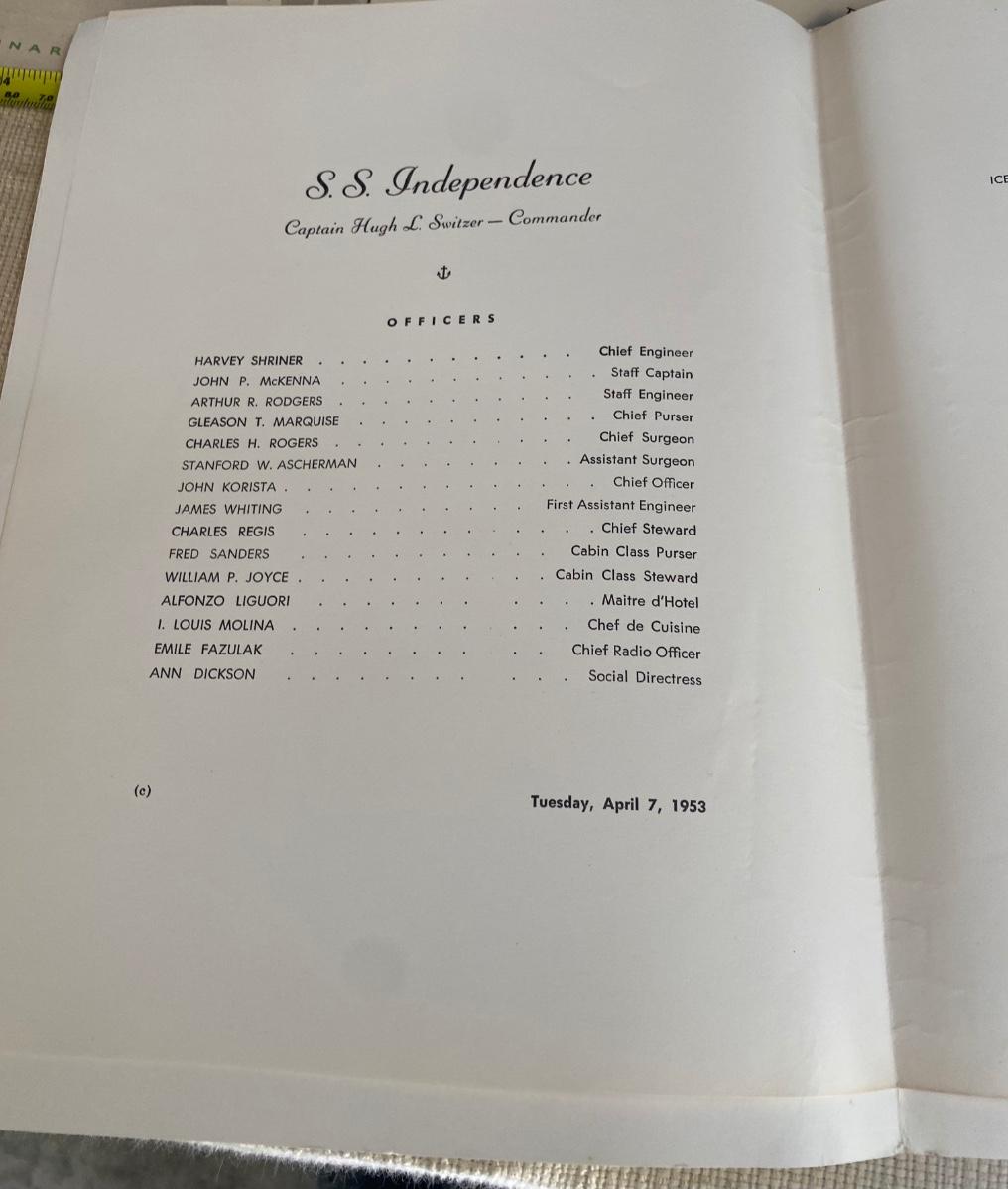 Vintage 1953 Cruise Menus