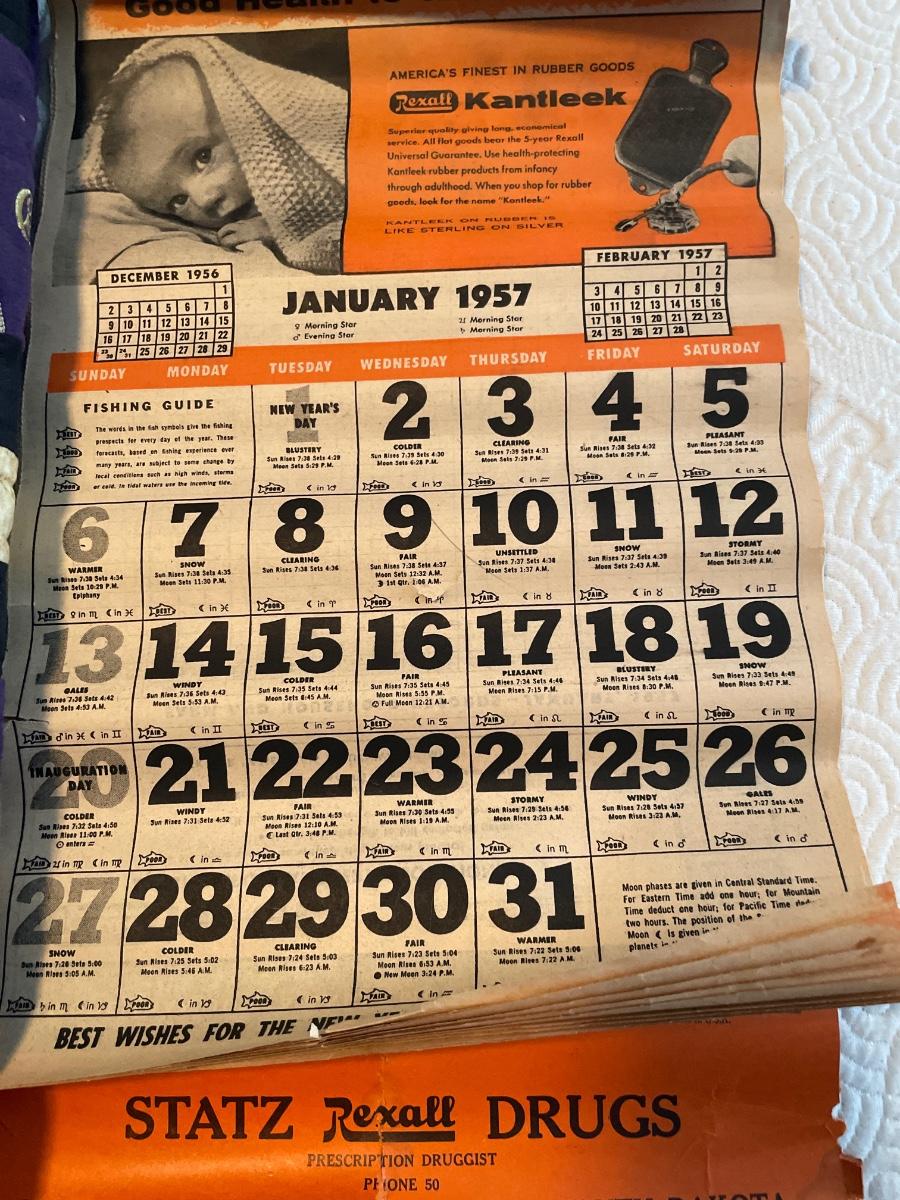 Vintage 1954 nude calendar & baby calendar
