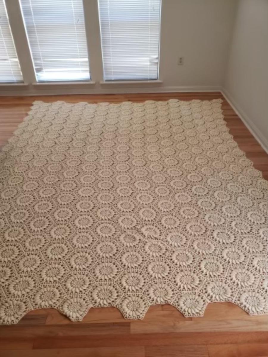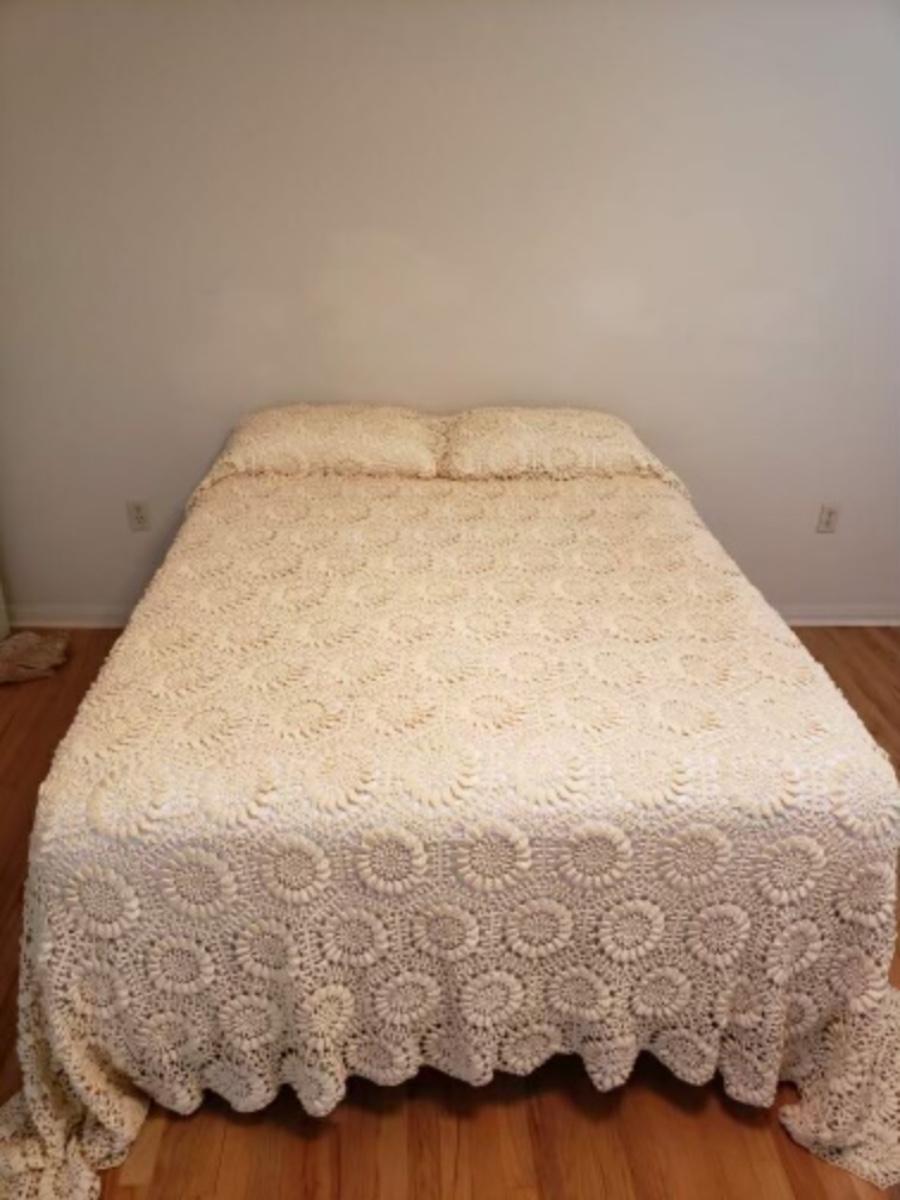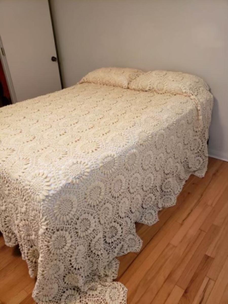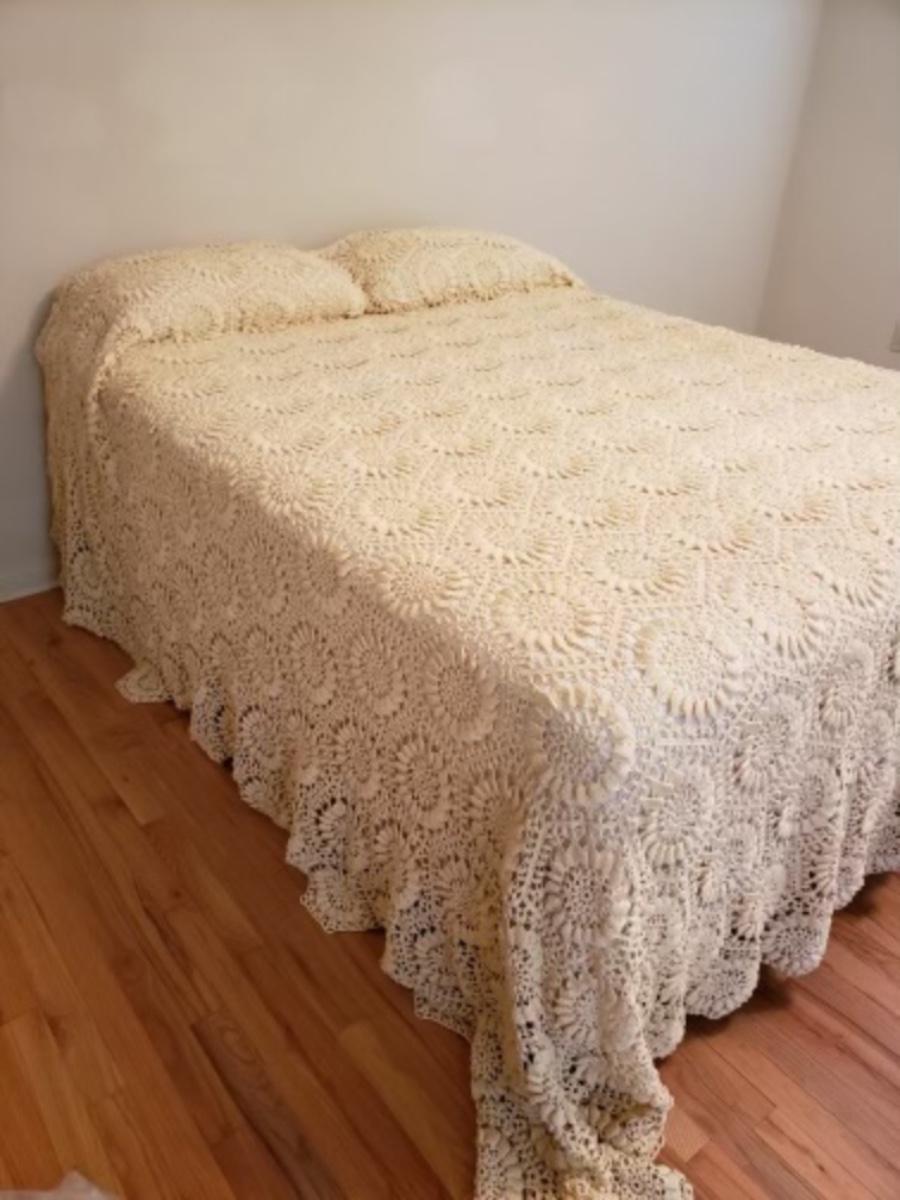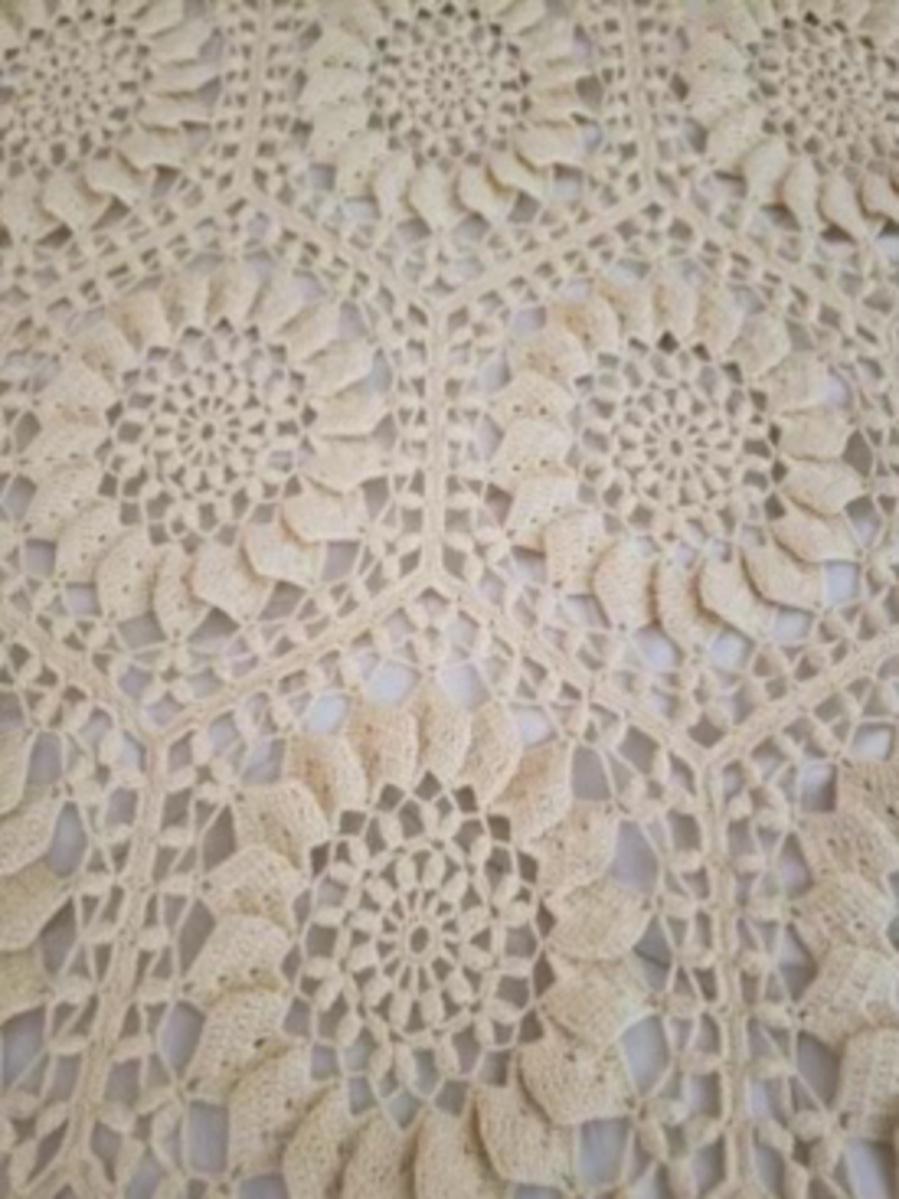 Vintage 1955 HAND CROCHET full size bedspread. Cream color excellent condition. 97 x 121.