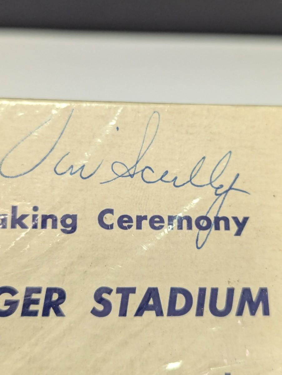 Vintage 1959 Dodger Stadium Groundbreaking Dirt In Souvenir Box With Vin Scully & Wally Moon & Two More