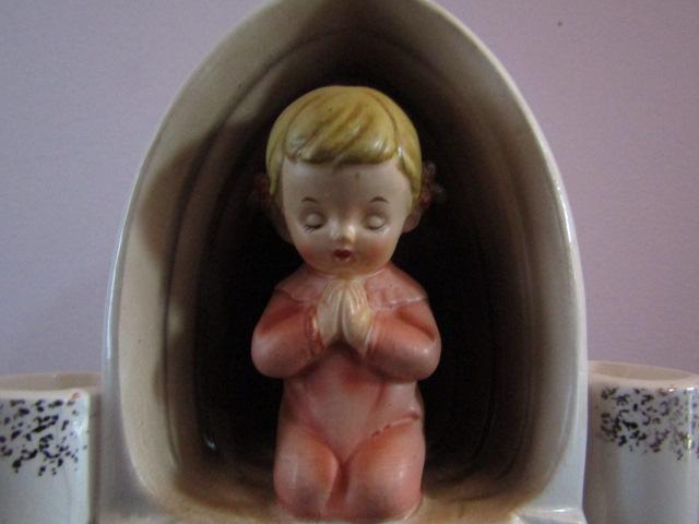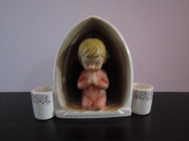 Vintage 1959 Holt Howard Praying Child Double Candle Holder. 4 inches high, 5 1/4 inches wide.