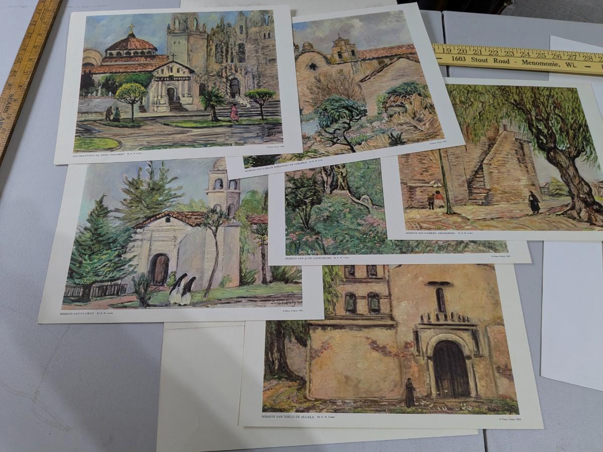 Vintage 1959 Oil Painting Prints of 8 Famous California Missions Original Folder