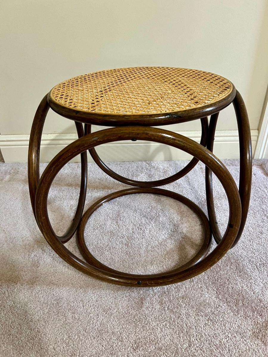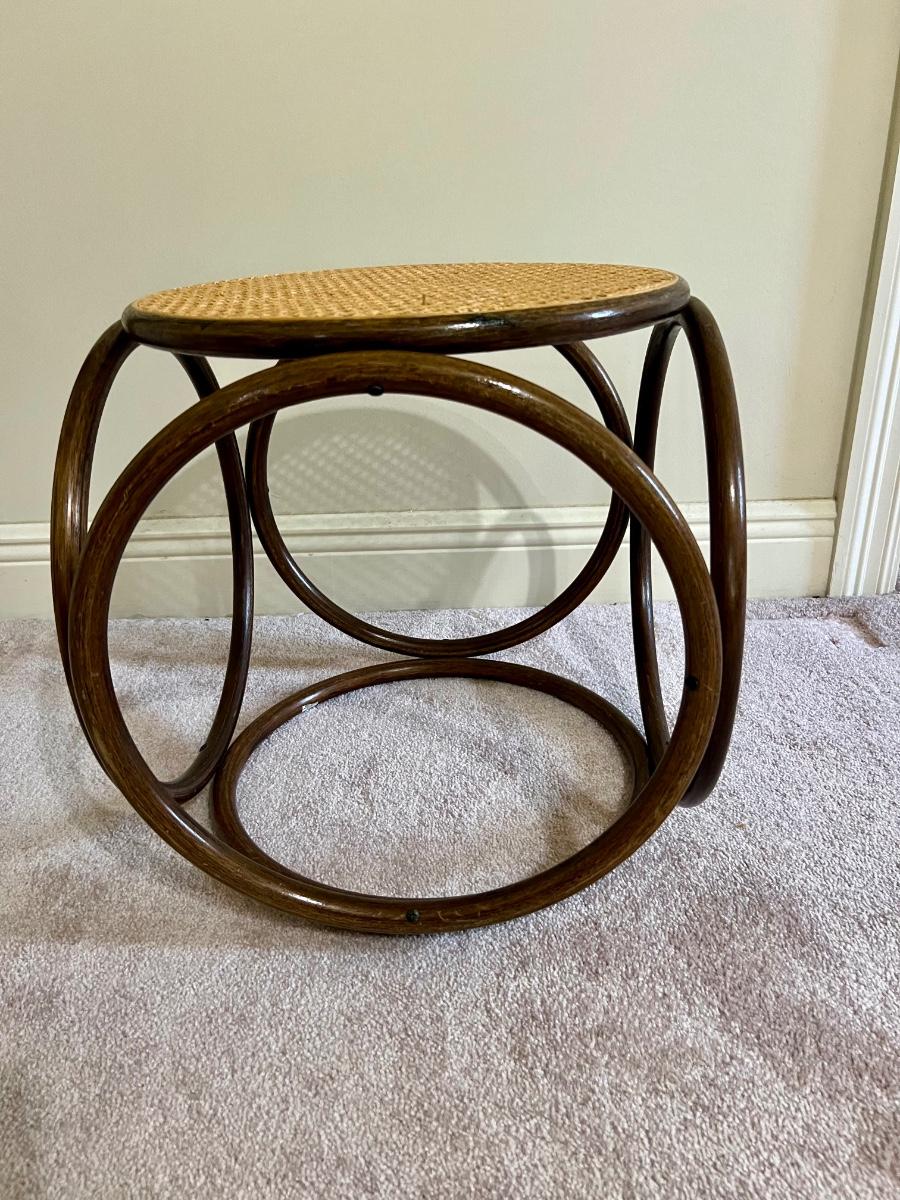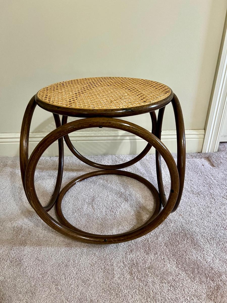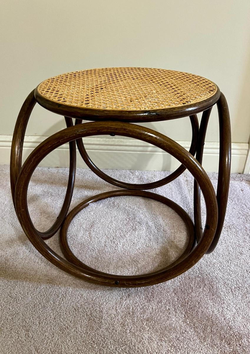 Vintage 1960s Bentwood and Cane Stool Ottoman