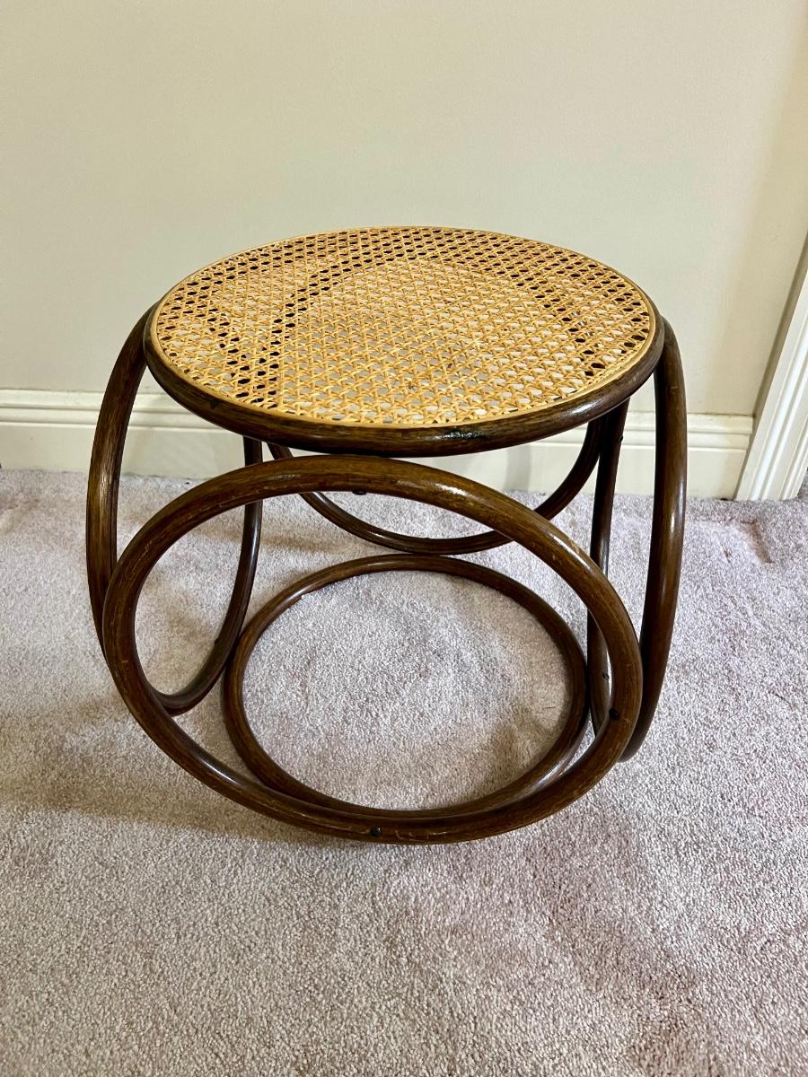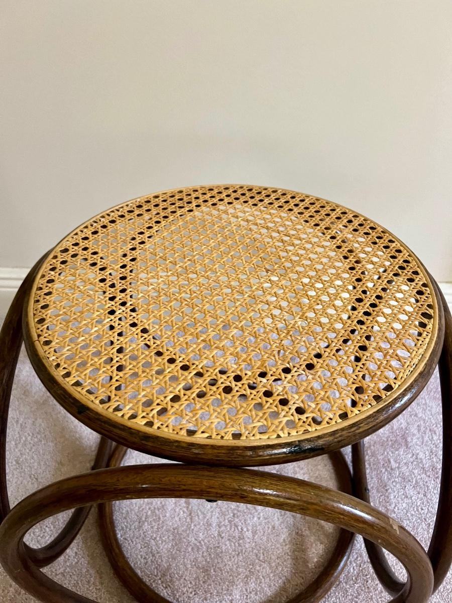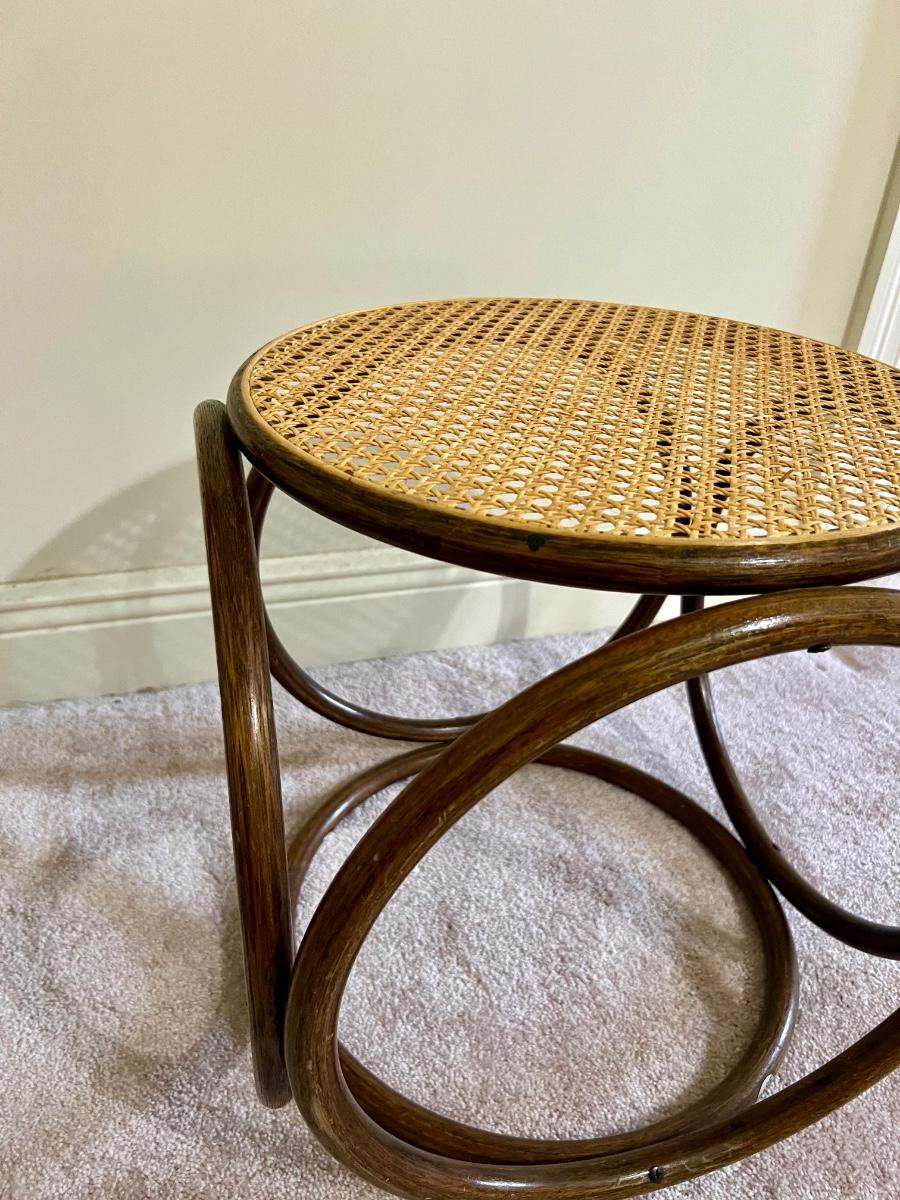 Vintage 1960s Bentwood and Cane Stool Ottoman