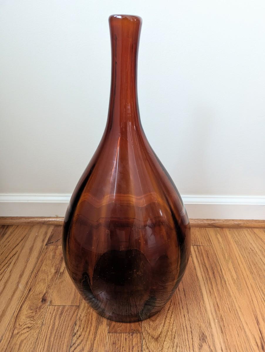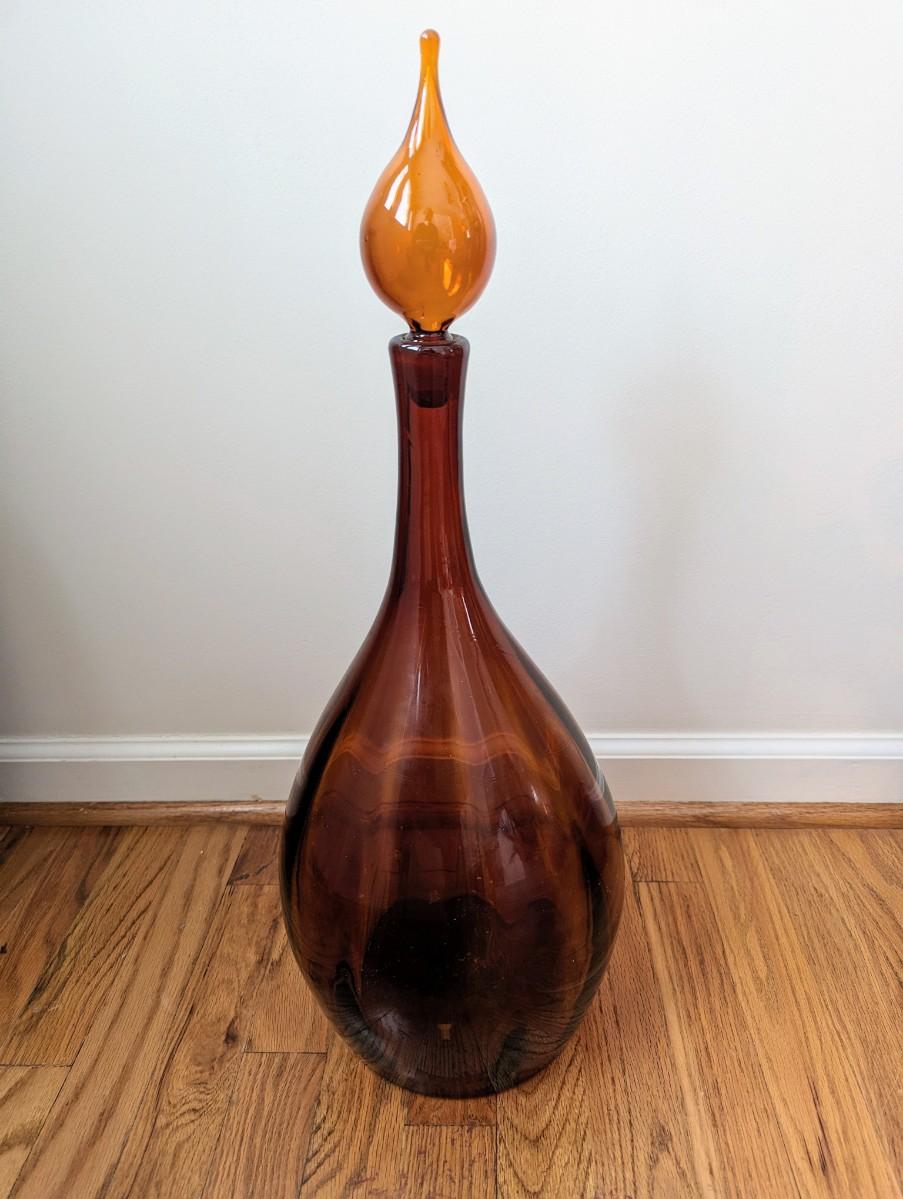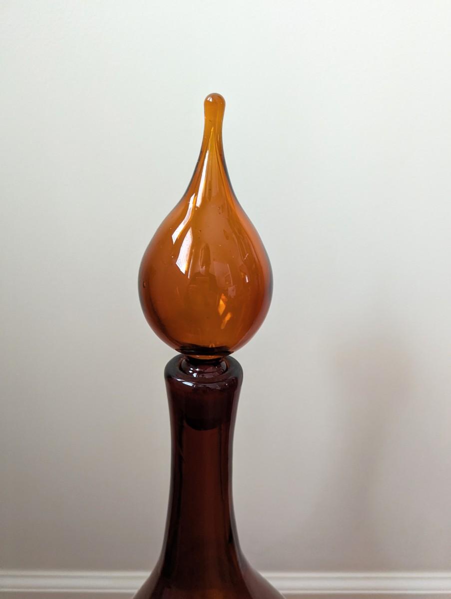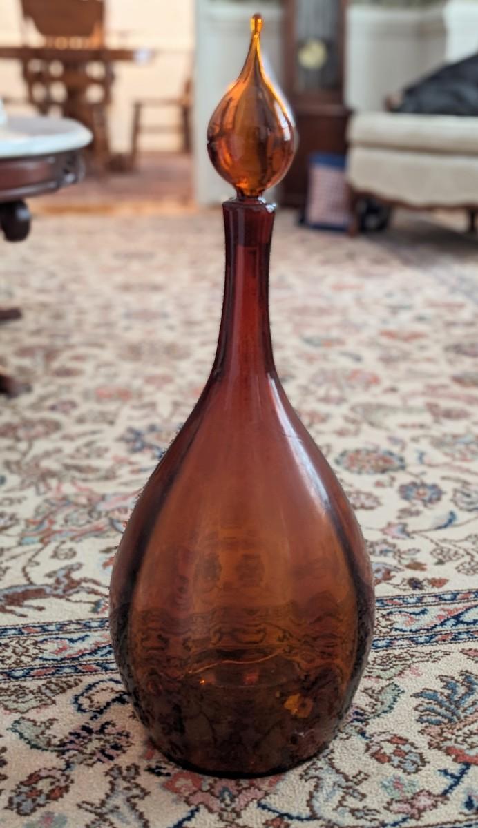 Vintage 1960's Blenko 6418 Amber Glass decanter and stopper Ribbed Optic