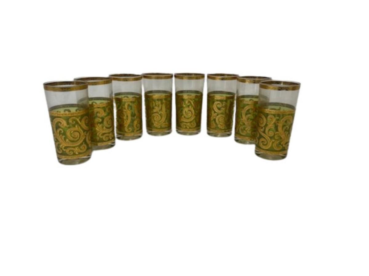 Vintage 1960s Culver Toledo Green Highball Glasses