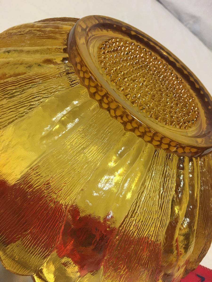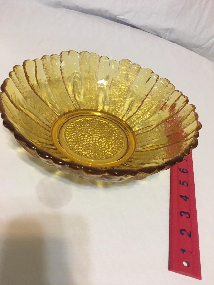 Vintage 1960's Indiana Glass Bowl Amber Sunflower Mid Century Fruit Bowl 10" Dia