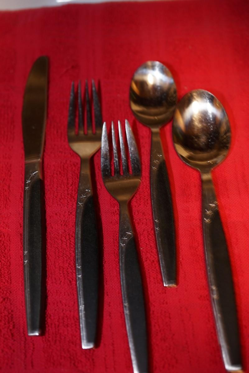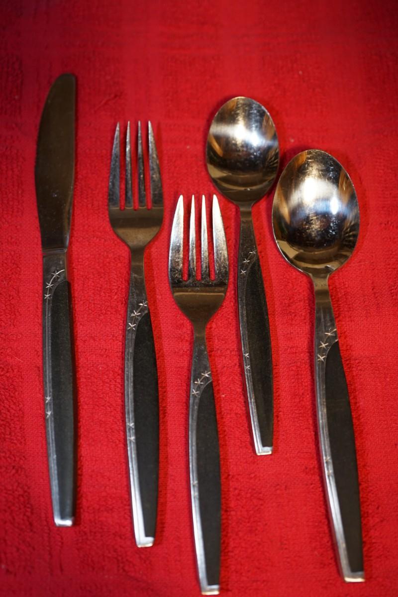 VINTAGE 1960'S MAR CREST EBONY ELEGANCE STAINLESS FLATWARE