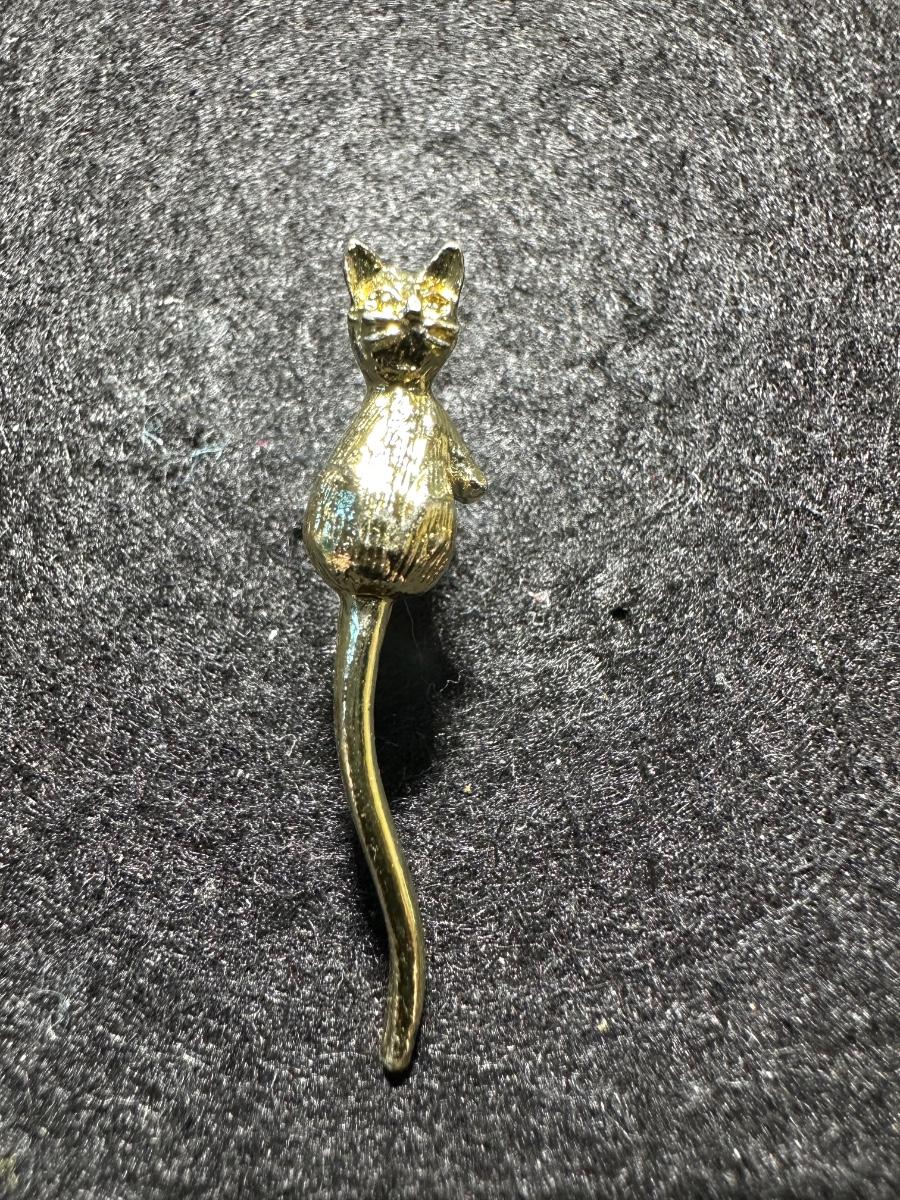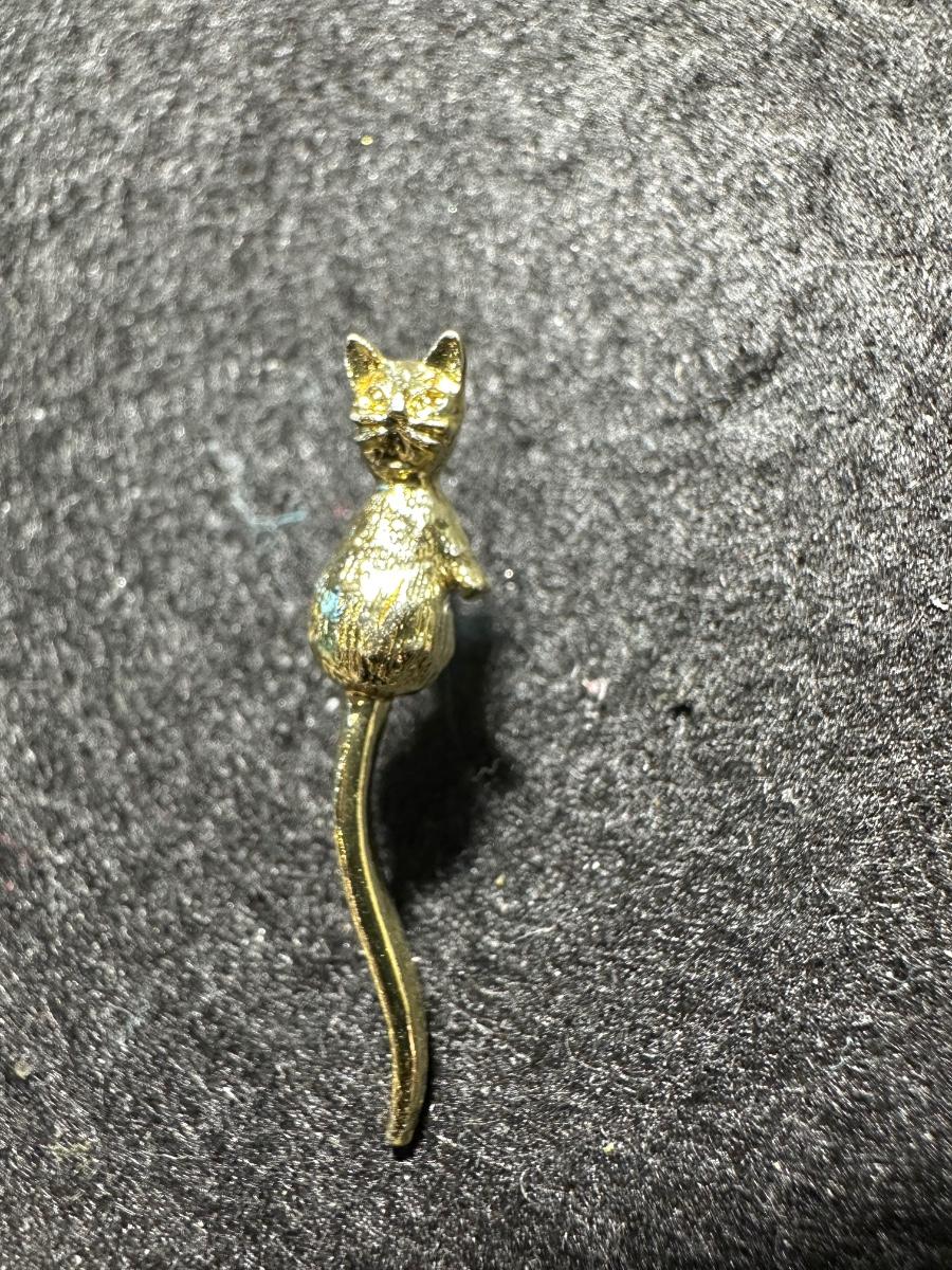 Vintage 1960's NEMO Gold Tone Kitty Cat Kitten Long Tail Pin Brooch