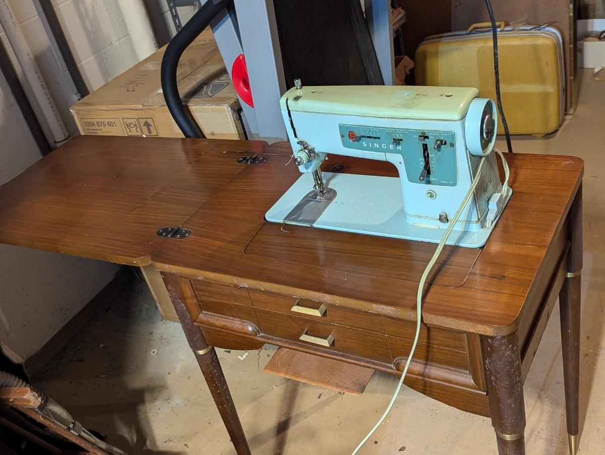 Vintage 1960s Singer Model 337 Sewing Machine Turquoise Blue & Table Made In England